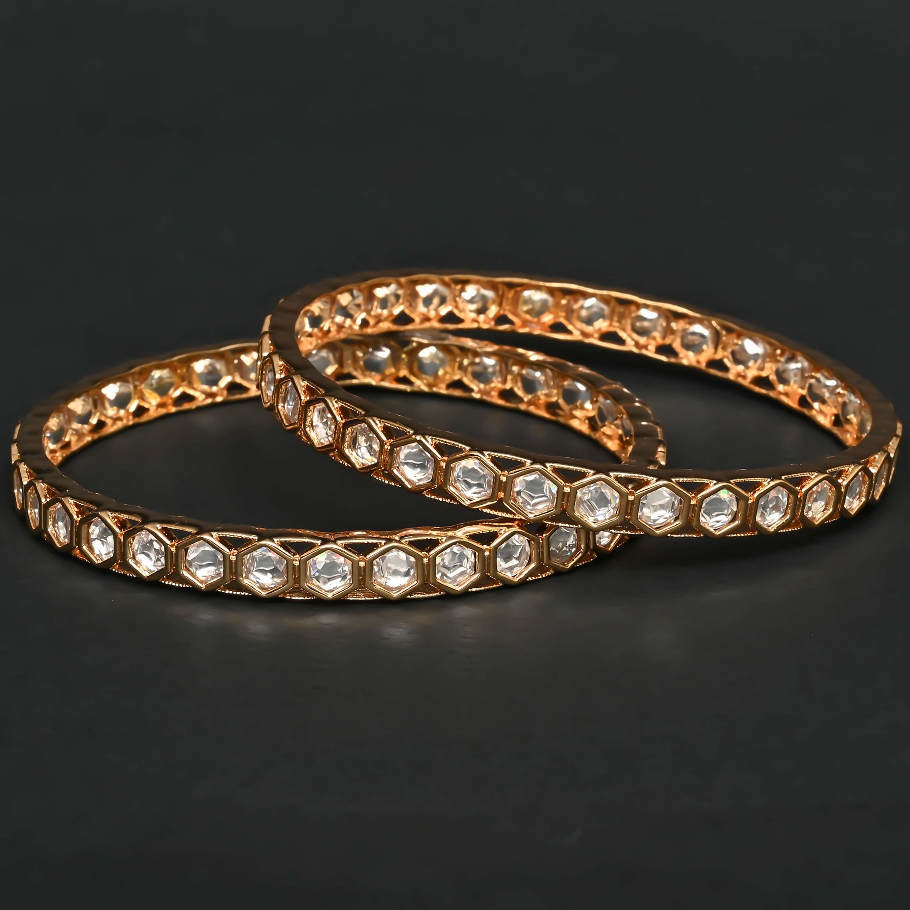 These Moissanite Bangles showcase expertly handcrafted designs featuring semi-precious moissanite stones with a brilliant diamond-like sparkle. Finished in a polished gold tone, each bangle is a unique piece that combines elegance with exceptional craftsmanship, perfect for those seeking one-of-a-kind jewelry with lasting beauty.