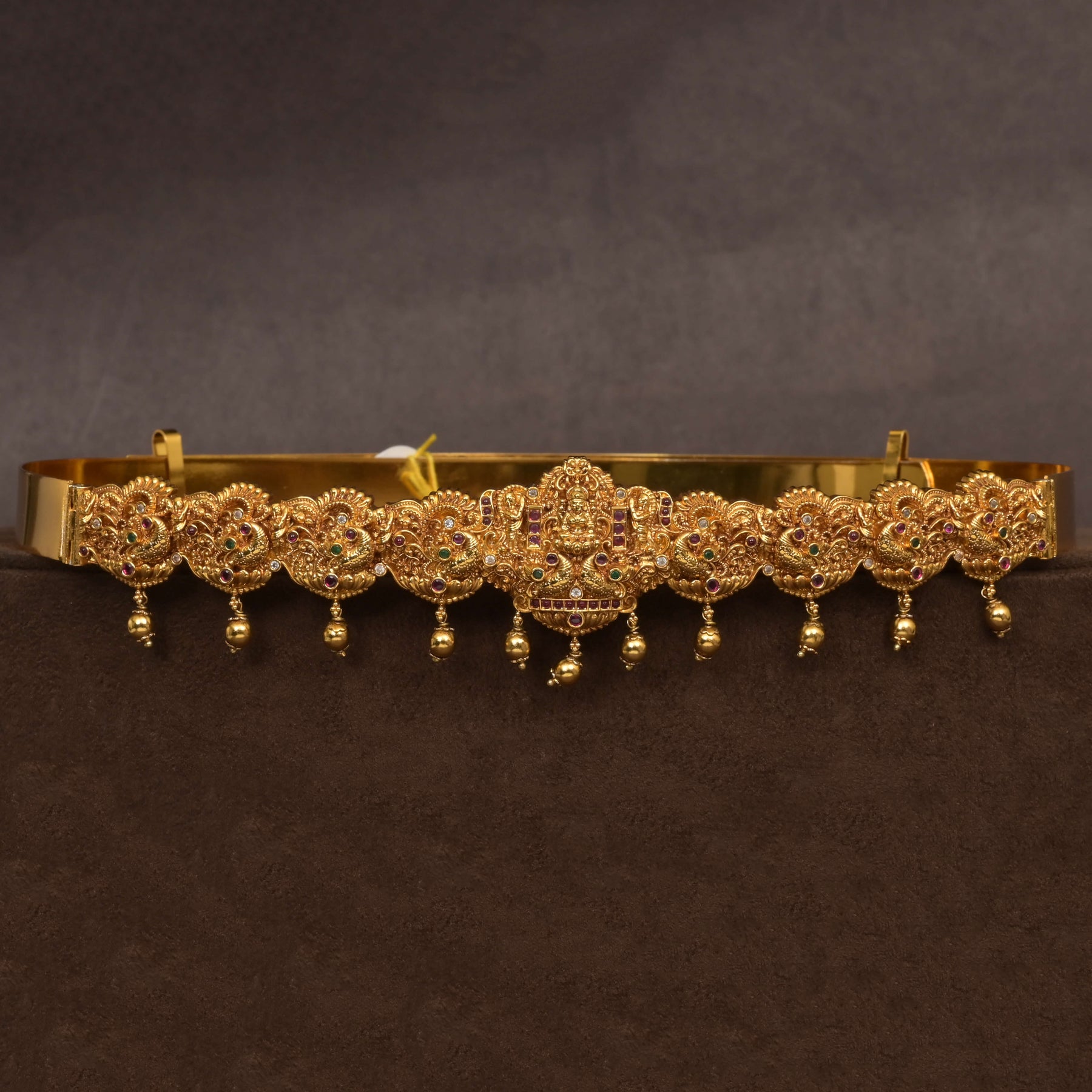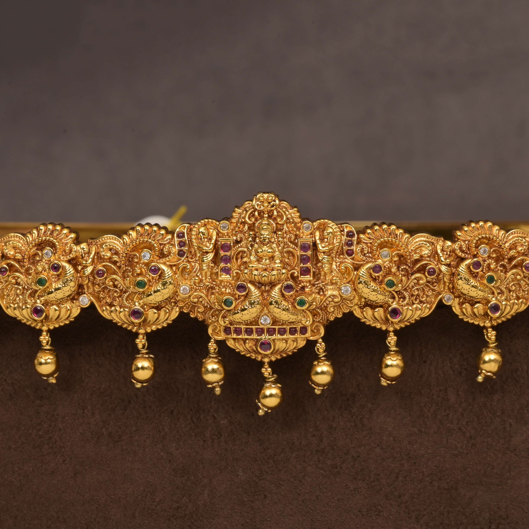 Adorn your little one with this exquisite Temple Baby Vaddanam, a handcrafted waist ornament inspired by traditional temple jewelry. Featuring a stunning Goddess Lakshmi design with authentic real gold finish, this one-of-a-kind piece captures the essence of classical craftsmanship. Each vaddanam is meticulously created to deliver that coveted temple jewelry aesthetic while remaining gentle for delicate skin. Perfect for special occasions, festivals, or everyday elegance, this heirloom-quality accessory celebrates timeless artistry and cultural heritage.
