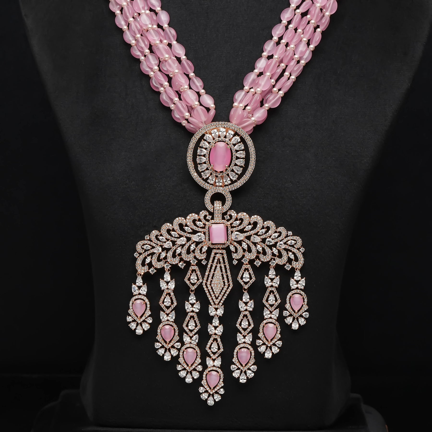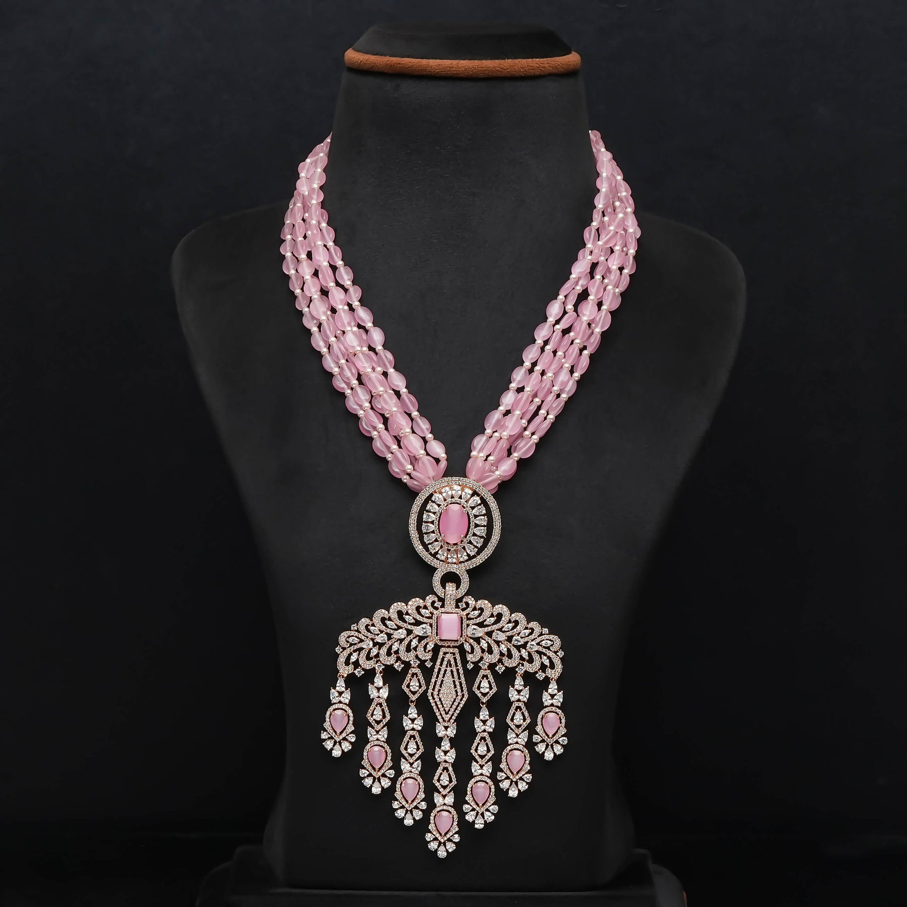 This exquisite Beads Necklace Set features real CZ stones meticulously handcrafted into multi-strand bead designs. Each piece is uniquely crafted, ensuring a one-of-a-kind accessory that blends elegant sparkle with artisanal detail. Perfect for adding a sophisticated touch to any ensemble.