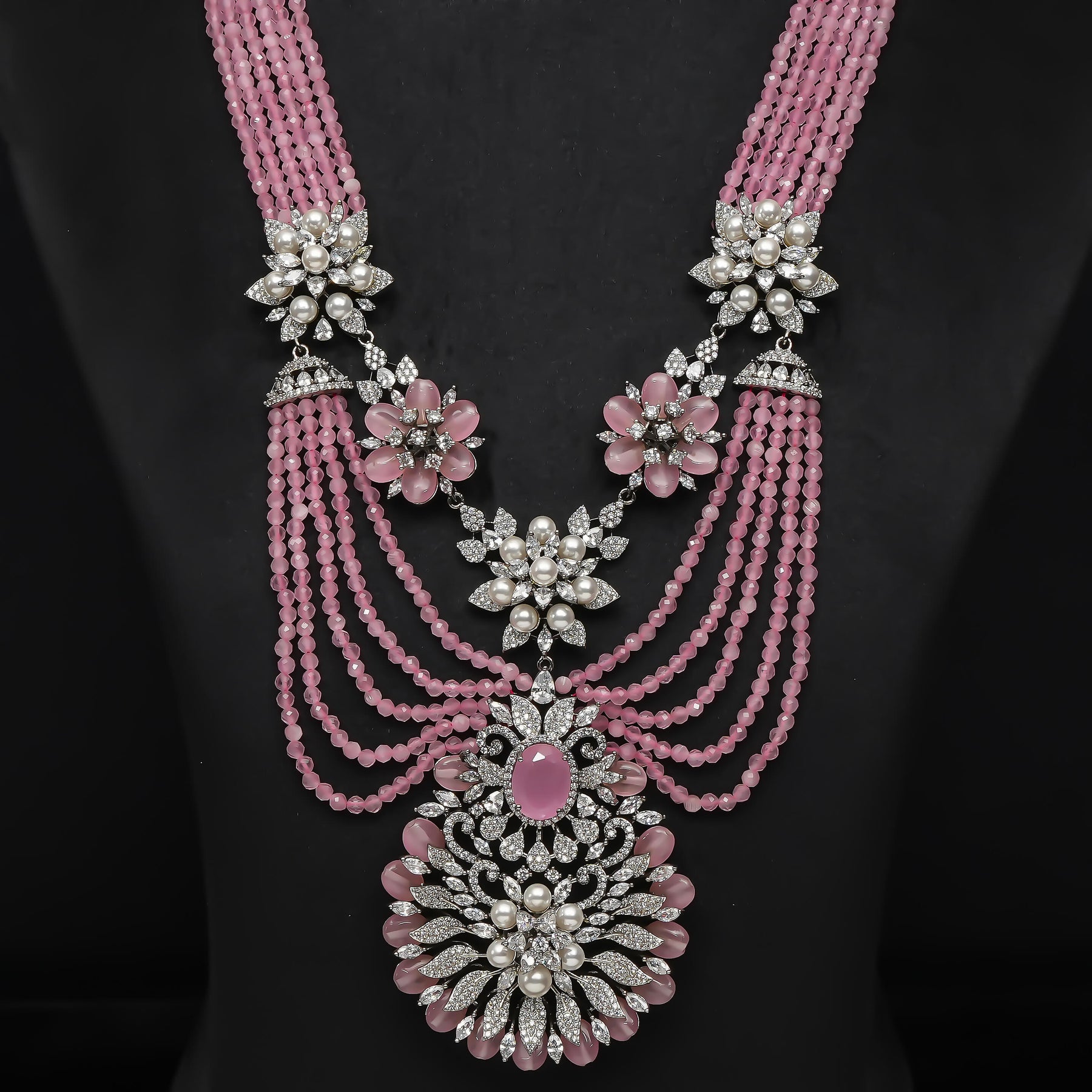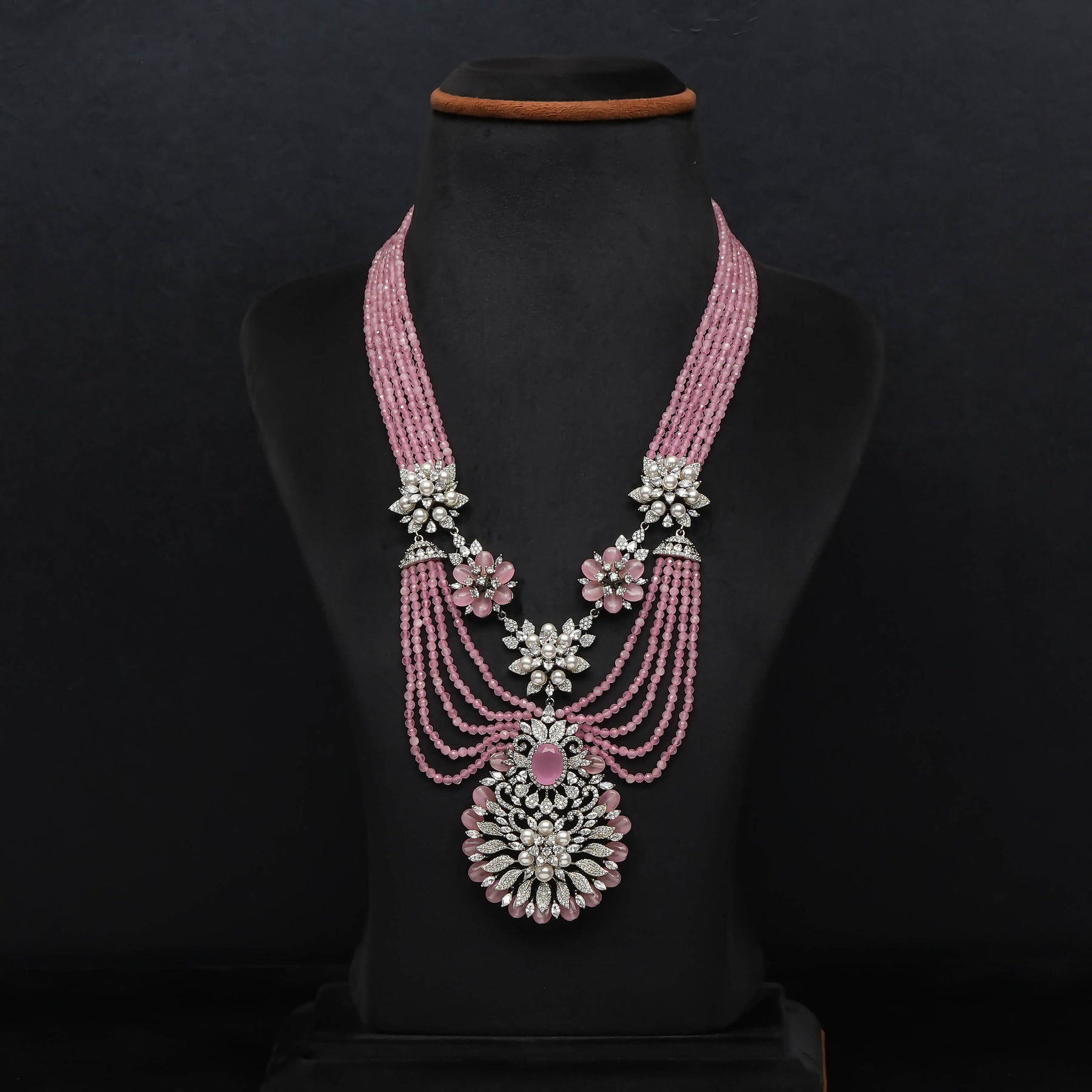This handcrafted crystal bead necklace set showcases multi-strand beads accented with genuine CZ stones, creating a sophisticated sparkle. Each piece features a unique, one-of-a-kind design that blends expert craftsmanship with refined elegance, making it an exceptional accessory for any occasion.
