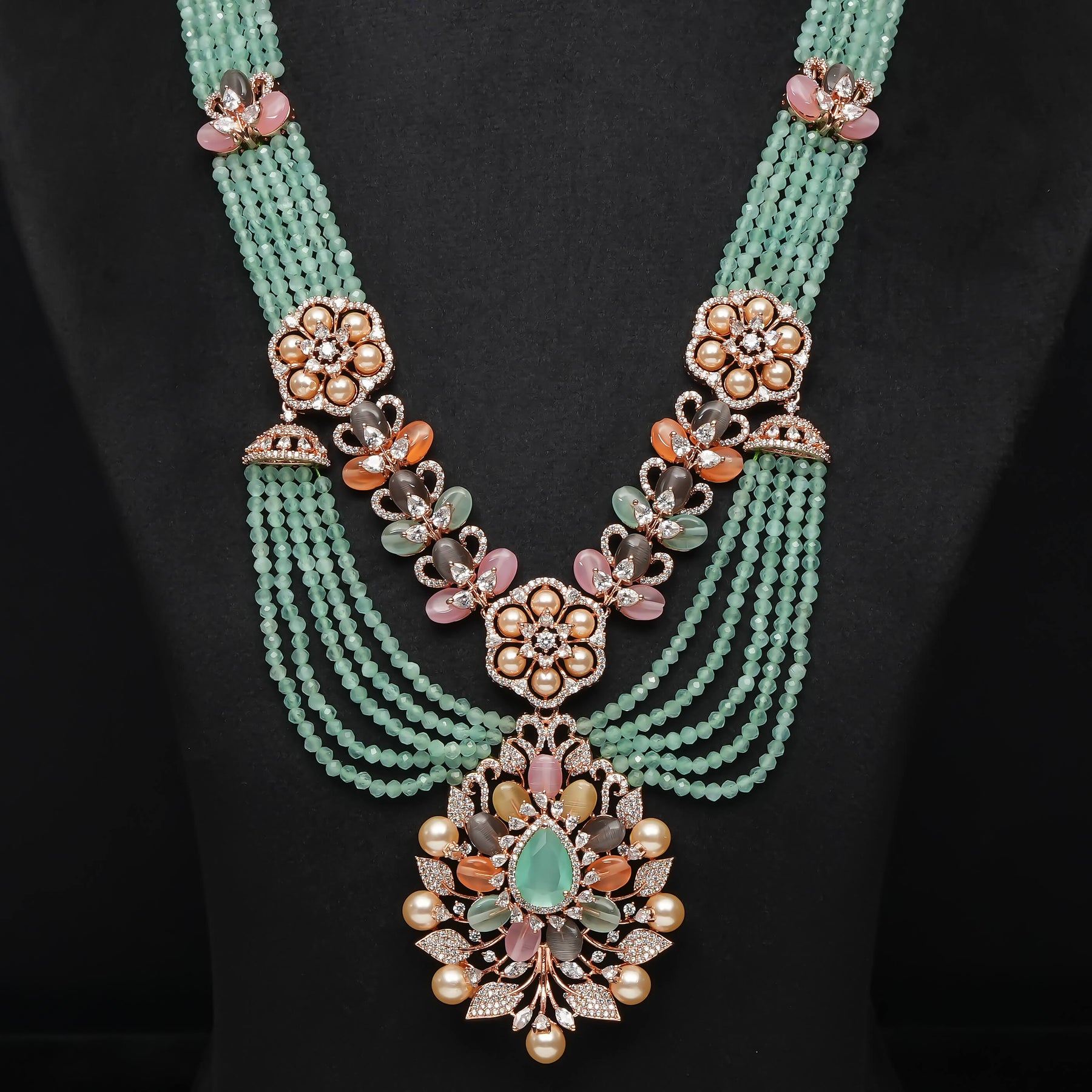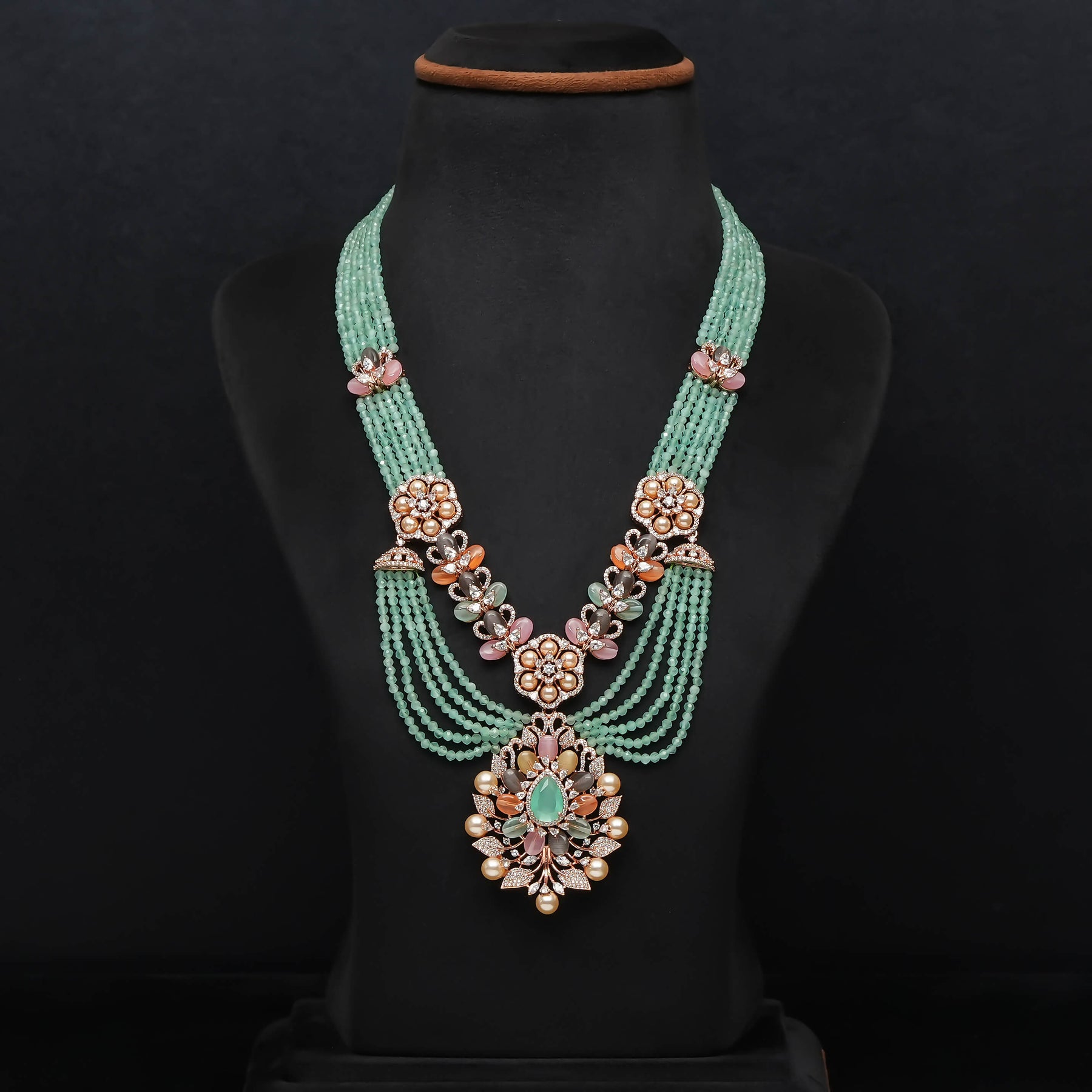 This handcrafted crystal bead necklace set features multiple strands of real CZ stones, creating a unique and elegant design. Each piece is carefully crafted to ensure individuality, offering a one-of-a-kind accessory that combines sophistication with timeless charm. Perfect for enhancing any outfit with subtle sparkle and expert craftsmanship.