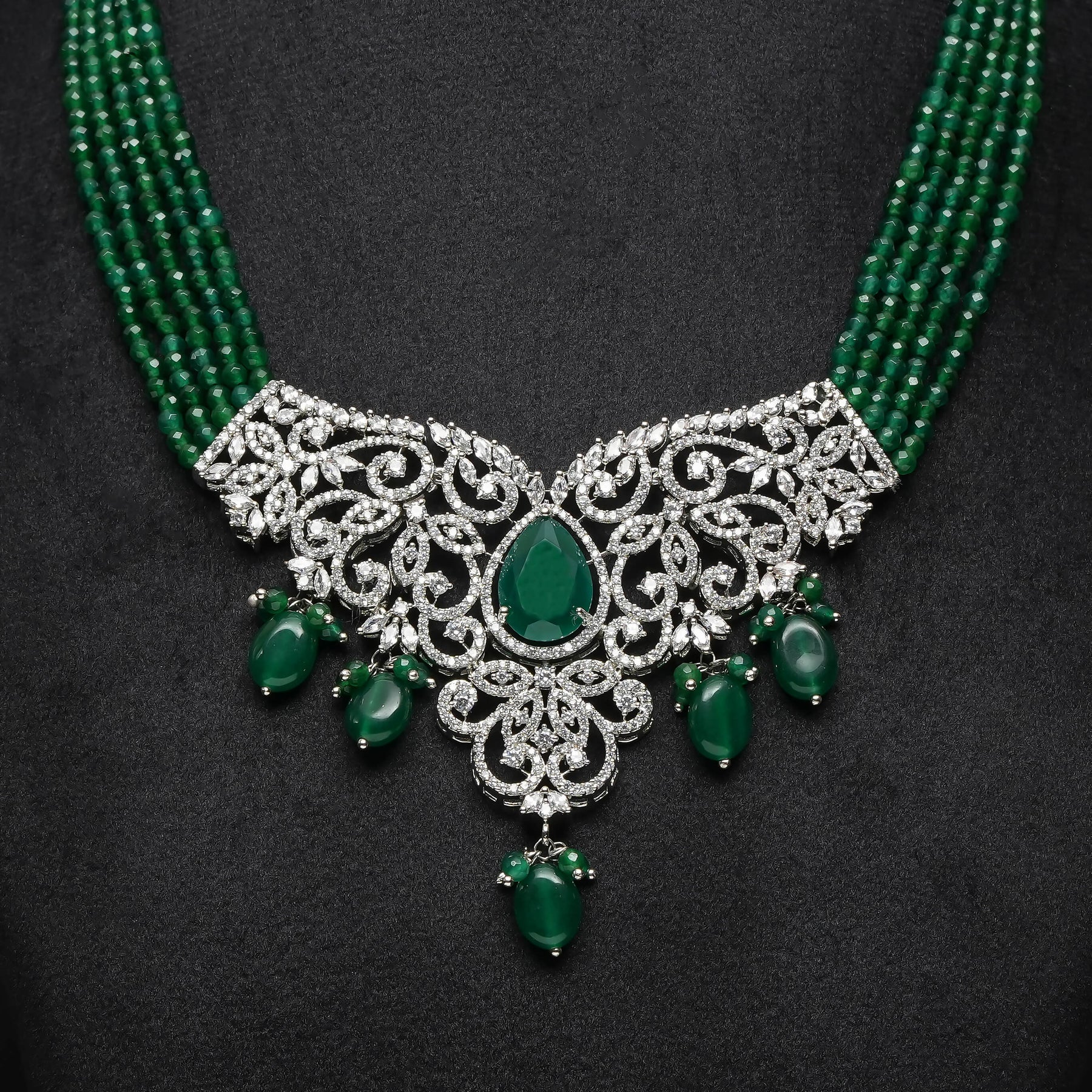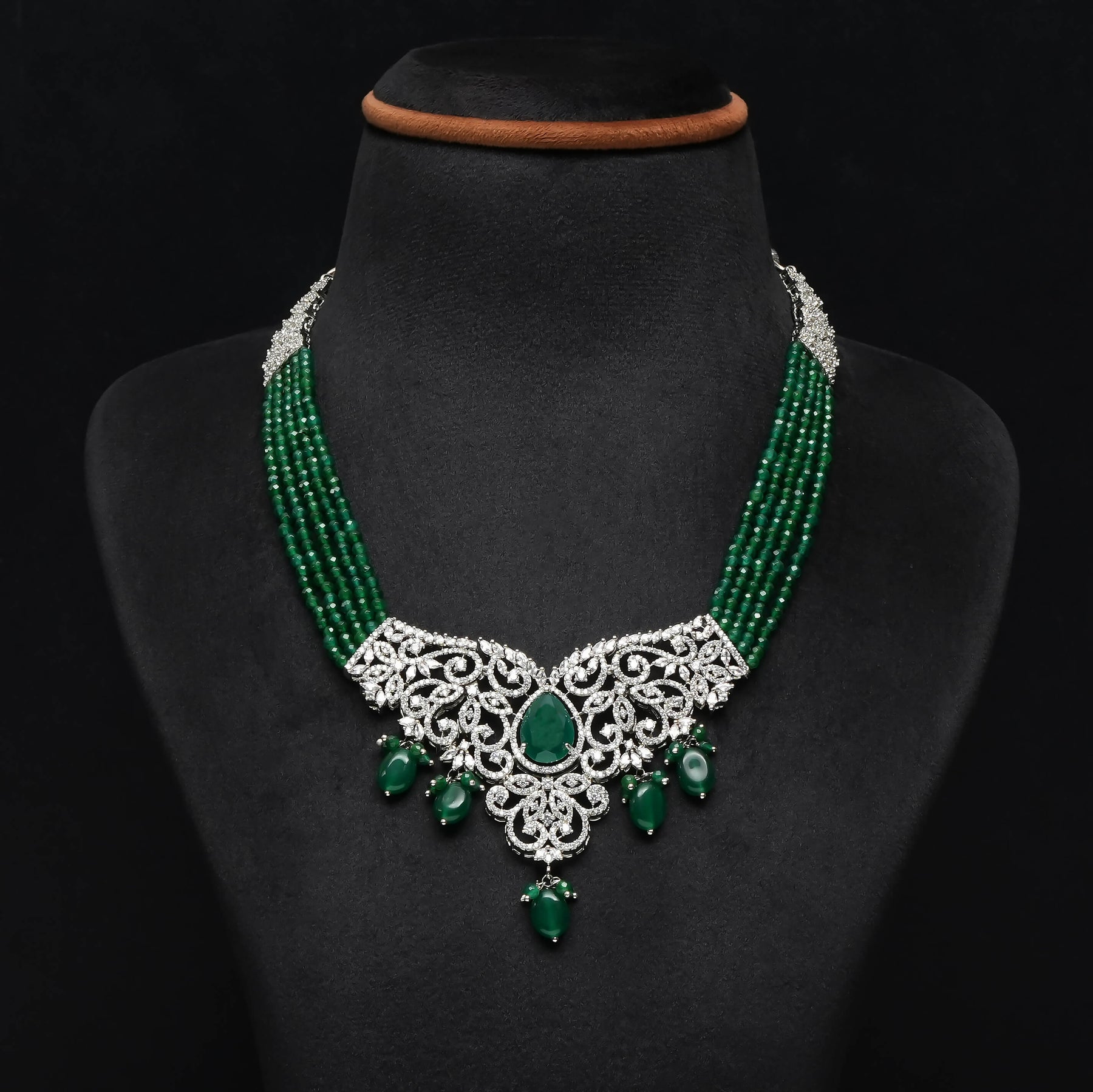 Elevate your style with this expertly handcrafted Beads Necklace Set, featuring real CZ stones that add radiant sparkle. The multi-strand design offers a unique, one-of-a-kind aesthetic, blending intricate craftsmanship with timeless elegance. Perfect for adding refined sophistication to any ensemble.