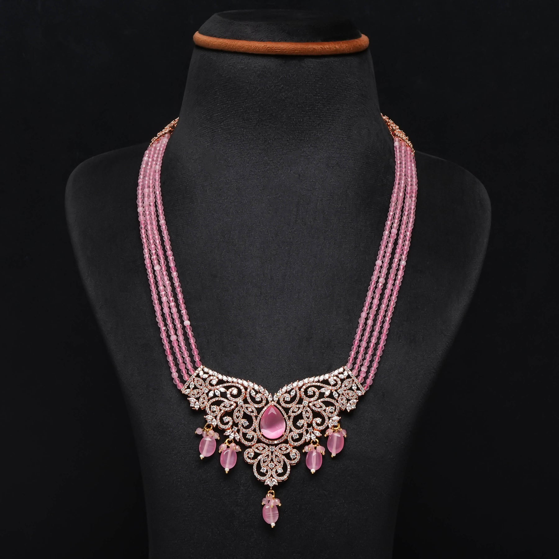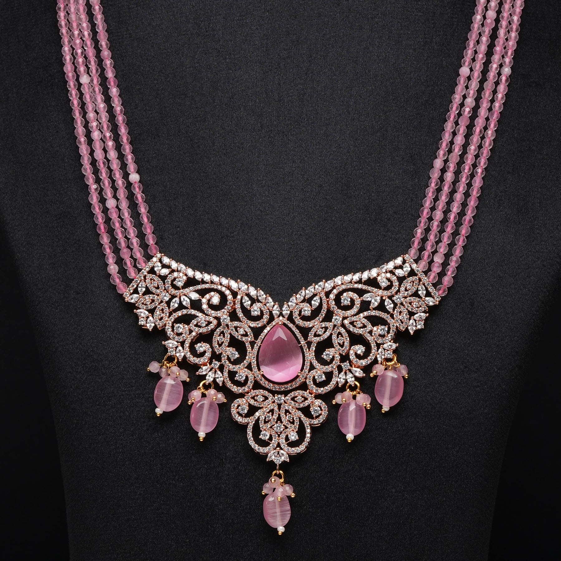 This handcrafted beads necklace set features multiple strands of crystal beads accented with real CZ stones, creating a sophisticated and unique look. Each piece is one of a kind, showcasing meticulous craftsmanship and attention to detail, making it an exquisite addition to any jewelry collection. Ideal for elevating your style with elegance and distinctive design.