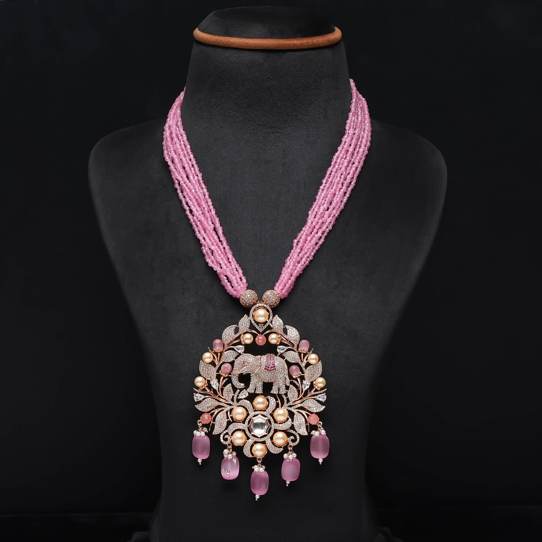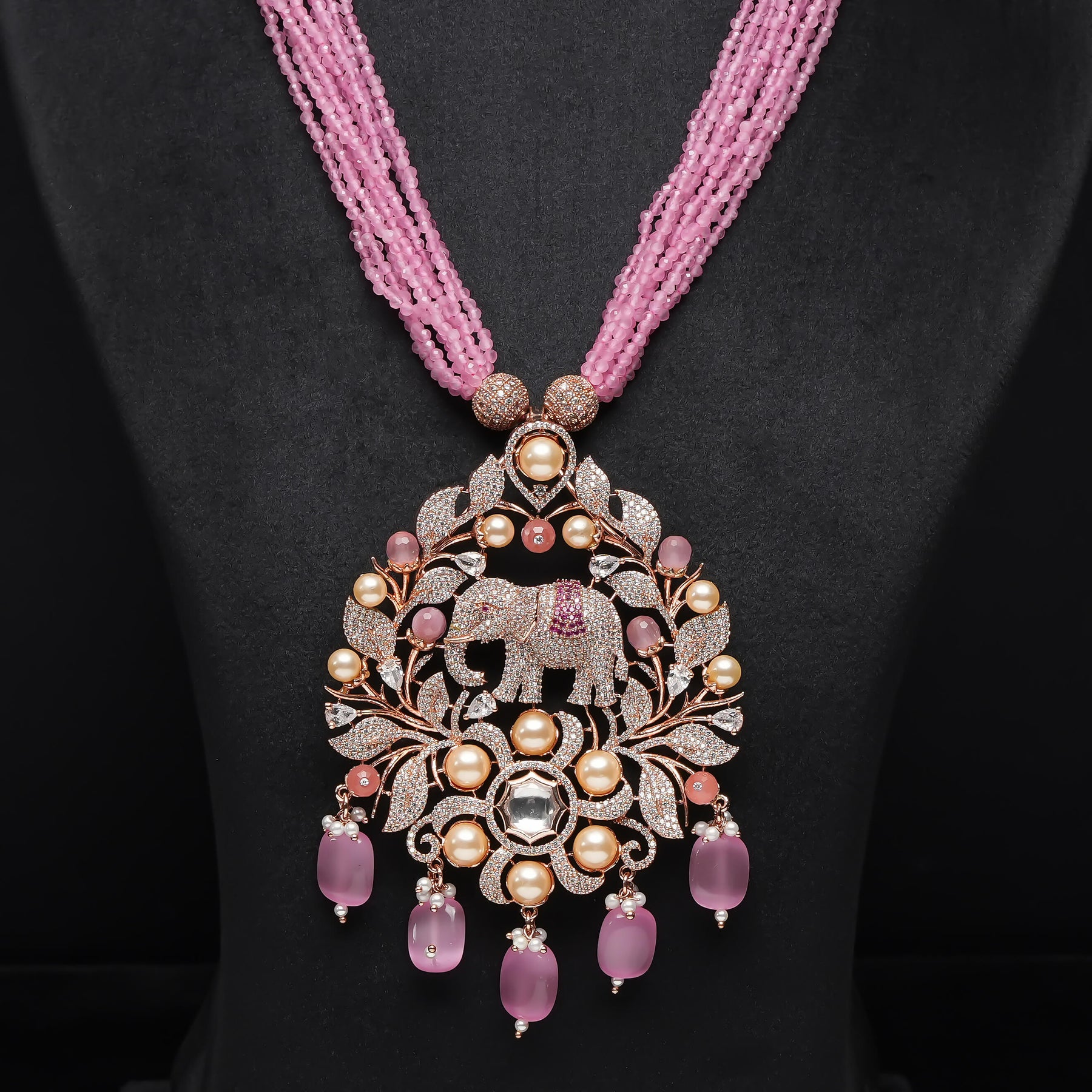 This handcrafted beads necklace set features genuine CZ stones meticulously arranged in multi-strand designs. Each piece is uniquely crafted, offering a one-of-a-kind accessory that combines elegance with artisanal precision. Ideal for those seeking sophisticated, distinctive jewelry with lasting brilliance.