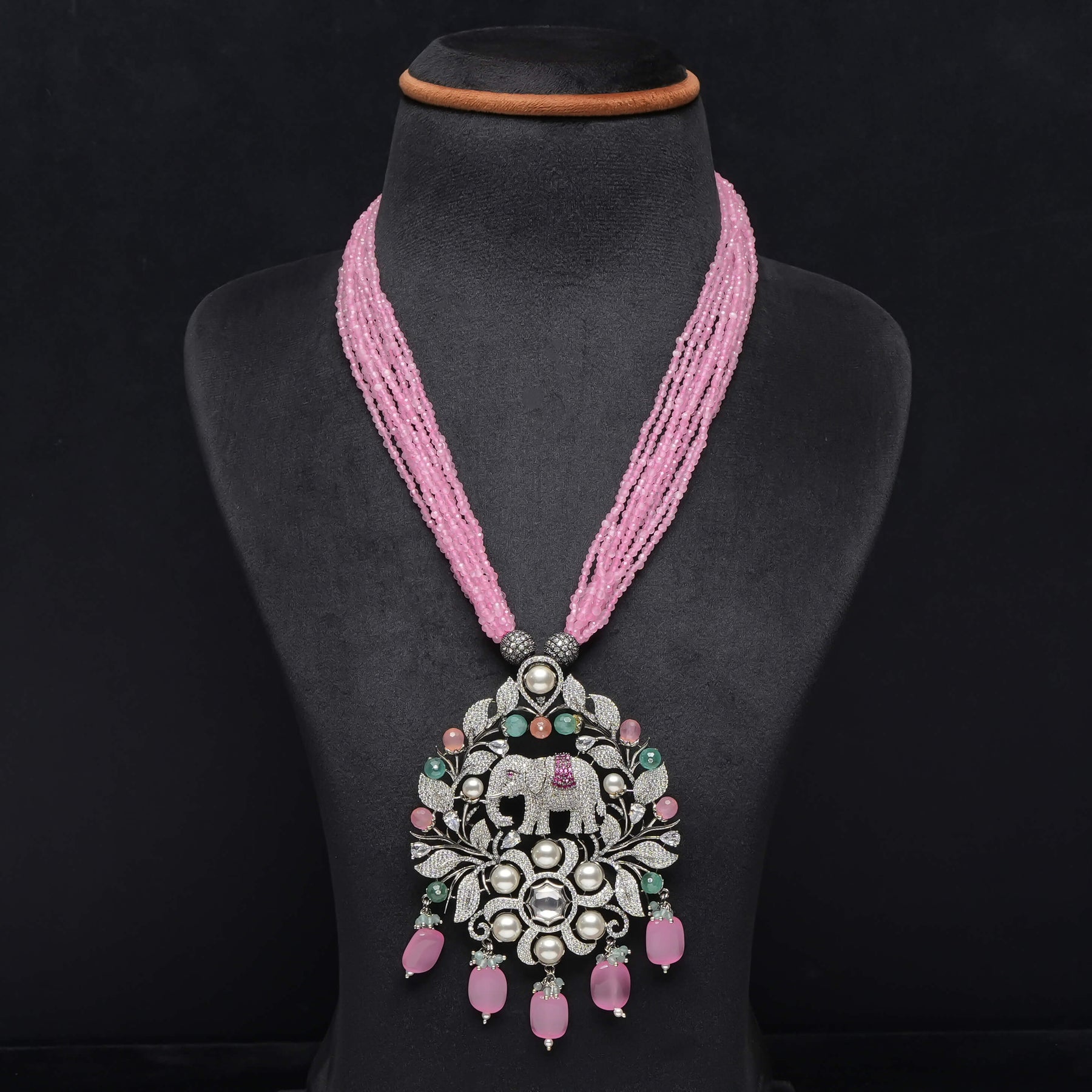 Elevate your elegance with this handcrafted Beads Necklace Set featuring multi-strand crystal beads and genuine CZ stones. Each piece is meticulously designed to ensure a one-of-a-kind accessory that blends intricate craftsmanship with timeless sparkle. Perfect for making a sophisticated statement at any occasion.