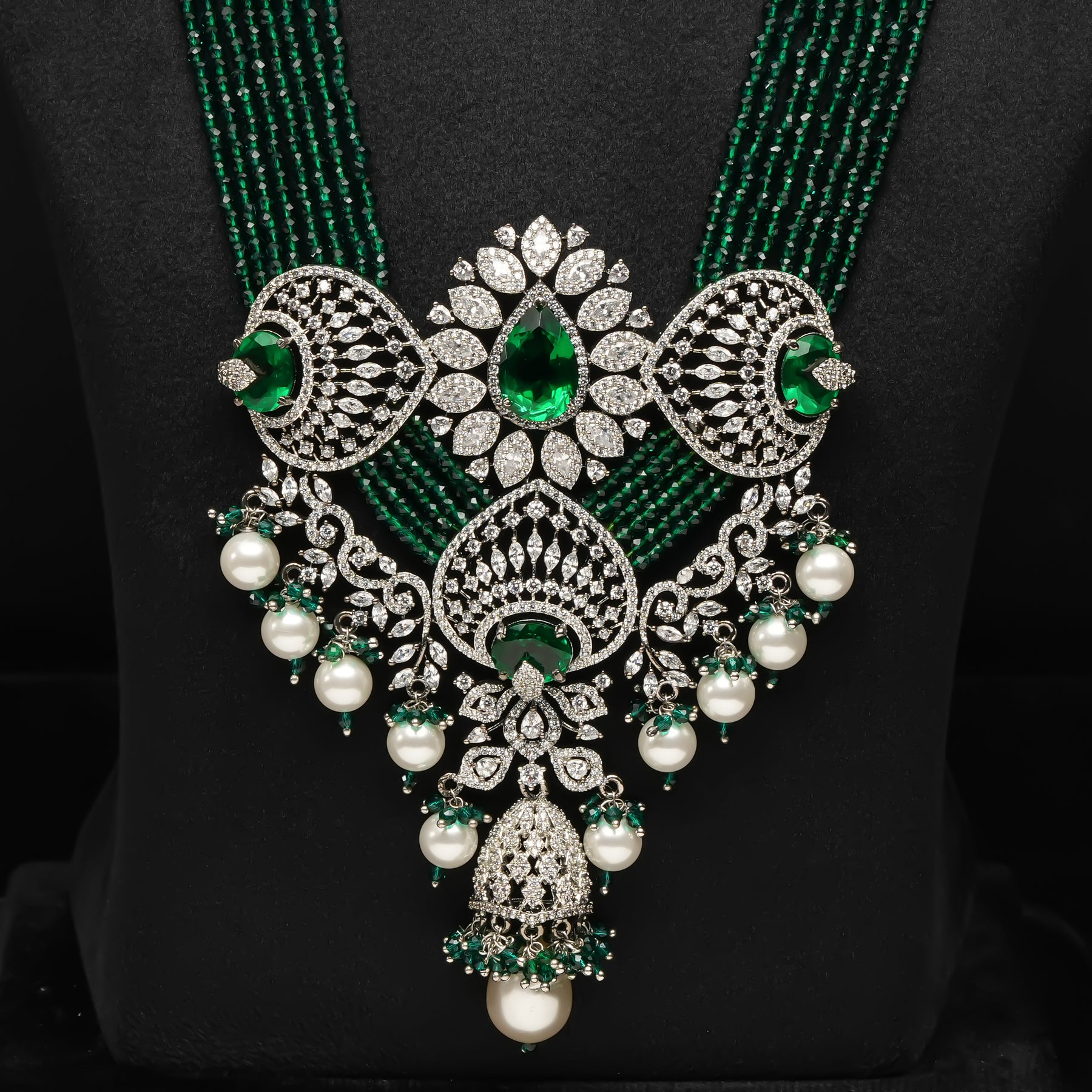 Elevate your elegance with this handcrafted Beads Necklace Set, featuring genuine CZ stones that offer brilliant sparkle and durability. Designed with a royal aesthetic in mind, each necklace is a unique masterpiece, showcasing expert craftsmanship and a one-of-a-kind design that ensures you stand out with grace and sophistication. Perfect for special occasions or adding a touch of luxury to everyday wear.