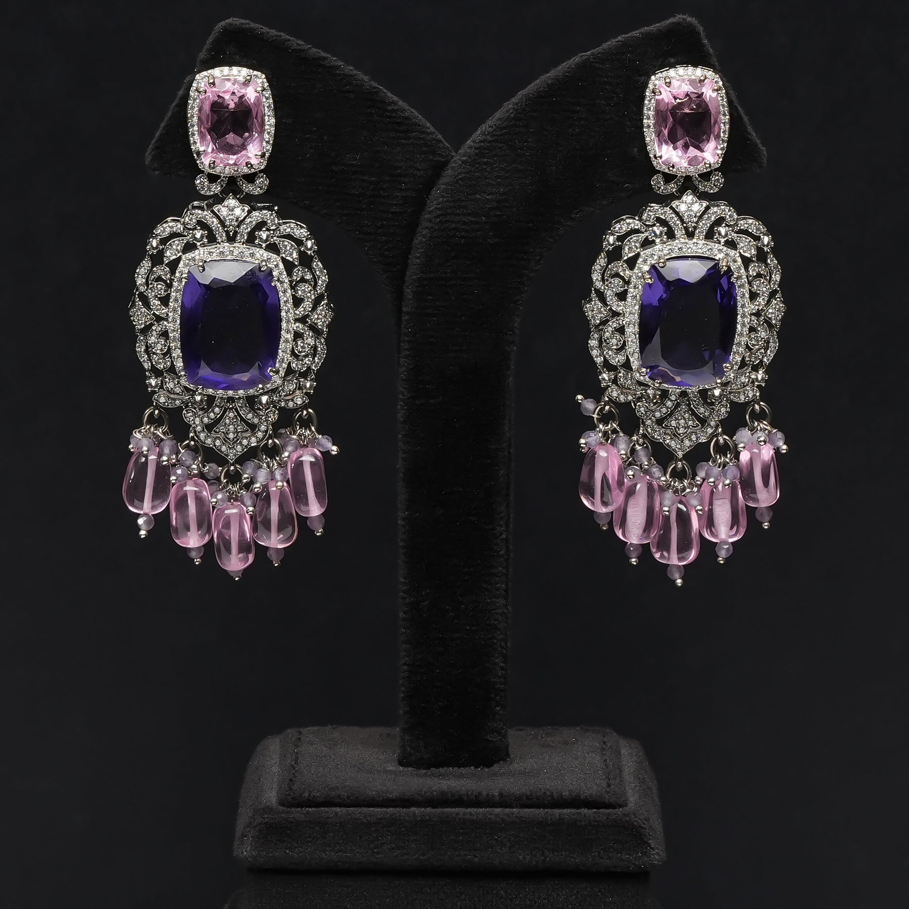 This handcrafted beads necklace set features a unique locket with a white gold finish, embellished with sparkling real CZ stones. The intricate design showcases expert craftsmanship and is complemented by matching earrings, making it a perfect ensemble for special occasions. Each piece is one of a kind, reflecting exceptional artistry and attention to detail.