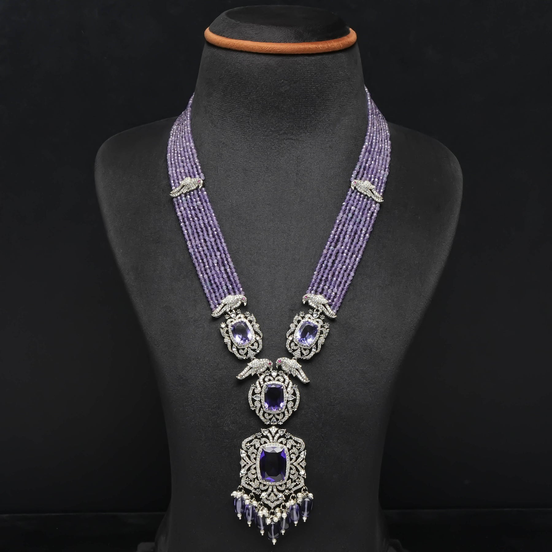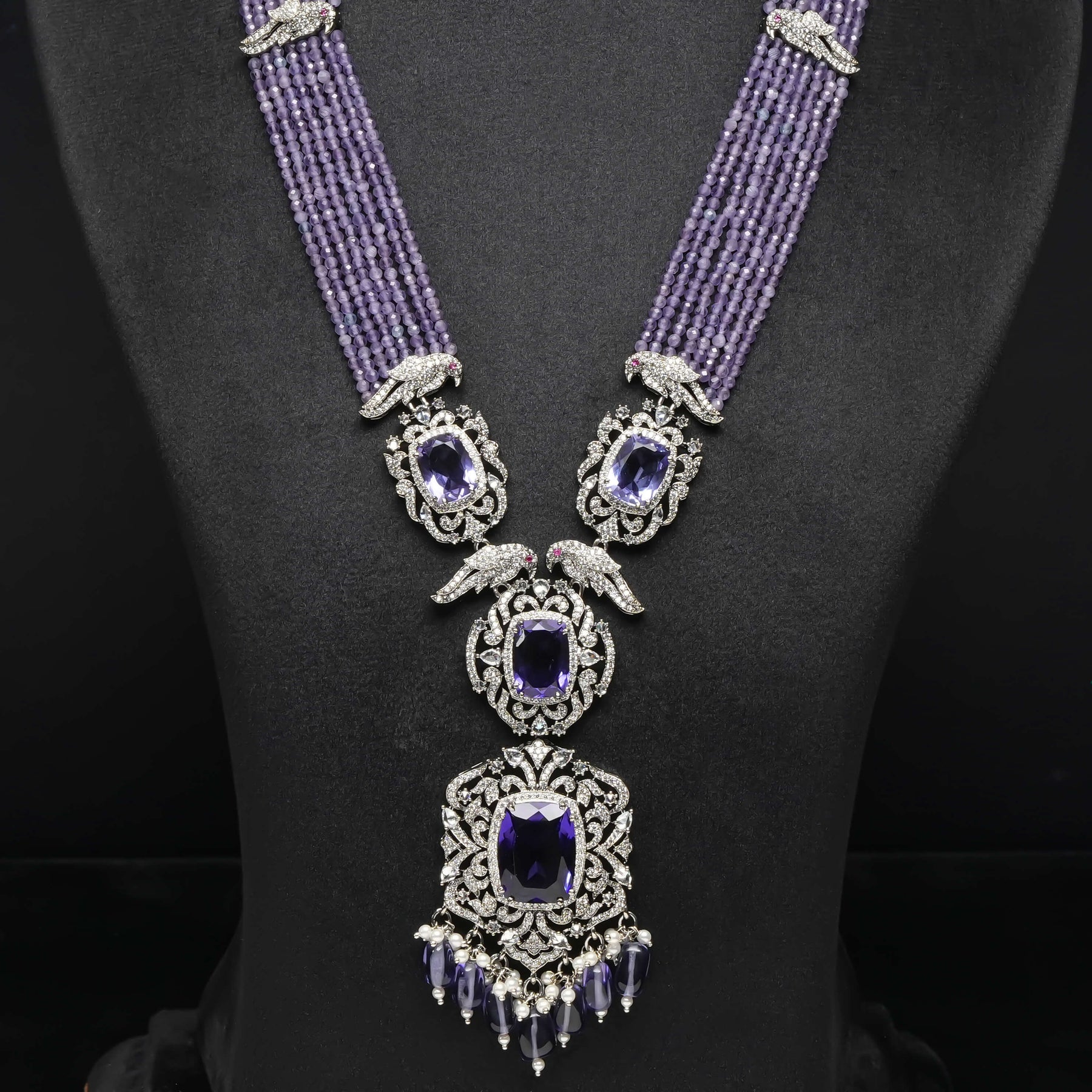 This exquisite beads necklace set features a white gold finish and real CZ stones, highlighting meticulous craftsmanship. The intricate design is uniquely handcrafted, ensuring a one-of-a-kind piece that pairs elegantly with matching earrings. Ideal for adding a refined touch to any ensemble, this set combines timeless style with exceptional detail.