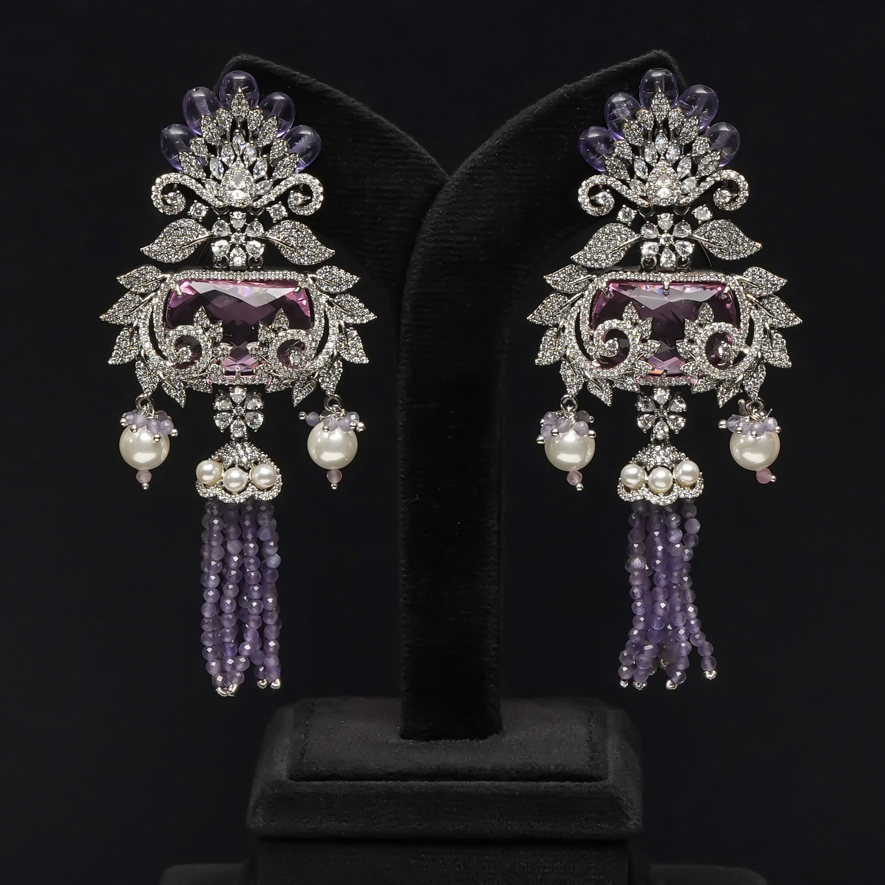 This exquisite beads necklace set features a white gold finish and sparkling real CZ stones. Handcrafted with meticulous attention to detail, the intricate design is complemented by matching earrings, creating a cohesive and elegant look. Each piece is uniquely crafted, ensuring a one-of-a-kind accessory that enhances any ensemble with expert craftsmanship and timeless style.
