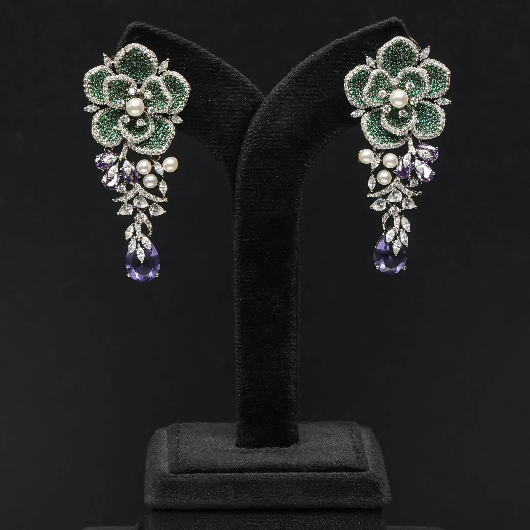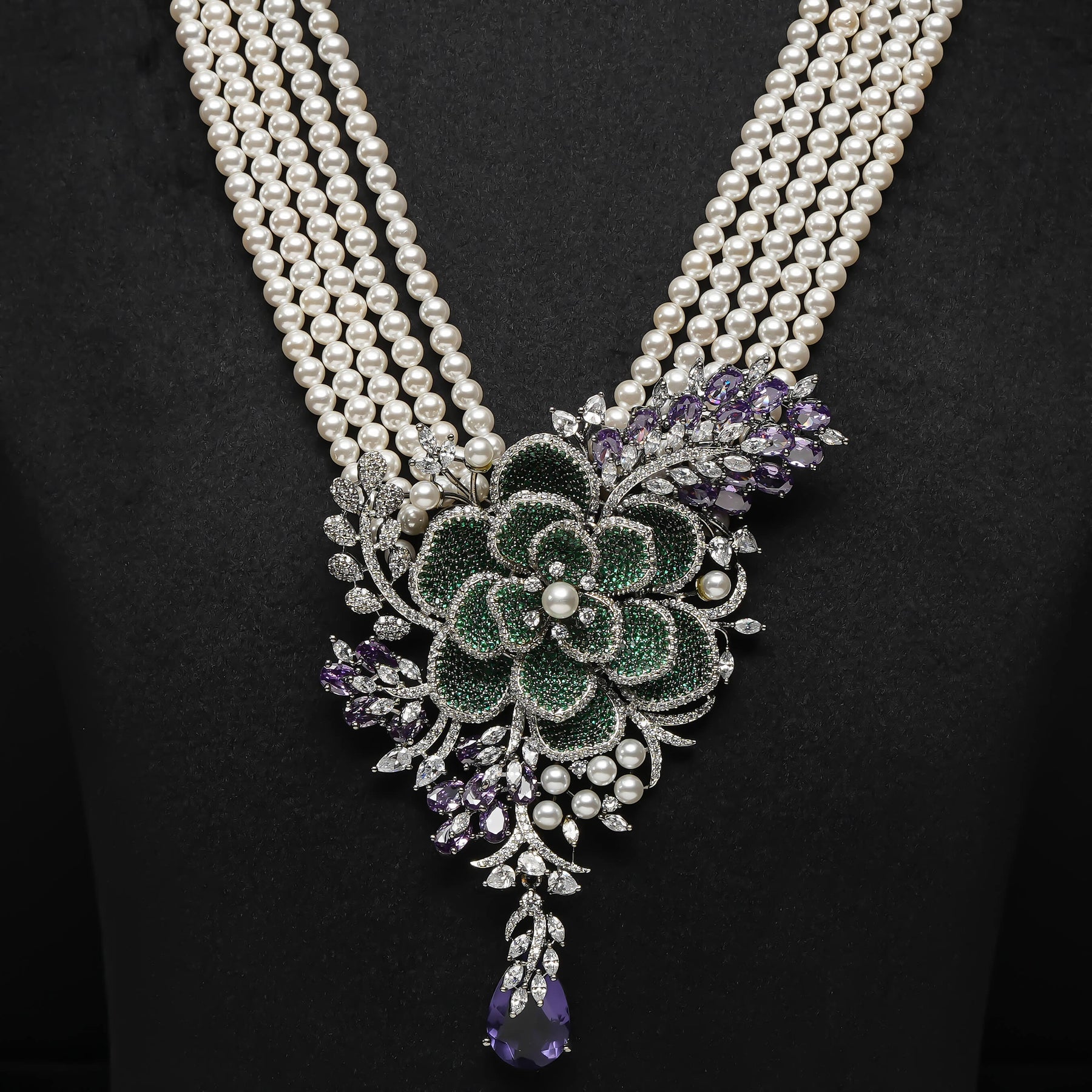 This exquisite beads necklace set features a white gold finish and is adorned with genuine CZ stones, showcasing intricate craftsmanship. Handcrafted with precision, the design is unique and pairs elegantly with matching earrings. A one-of-a-kind piece, it offers refined style and lasting quality for distinguished occasions.