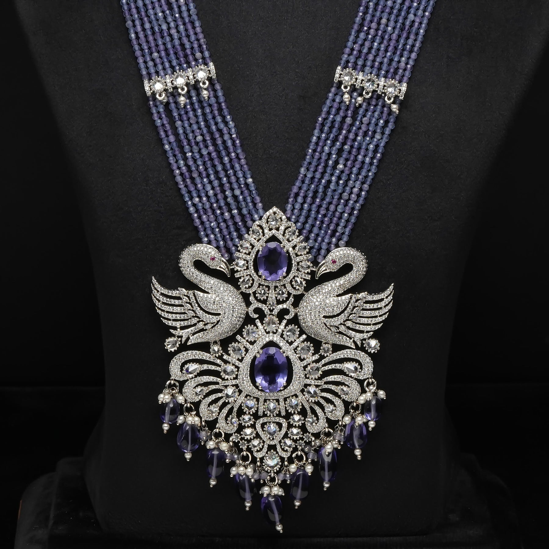 Elevate your collection with this handcrafted beads necklace set, featuring a white gold finish that exudes elegance. Adorned with genuine cubic zirconia stones, this one-of-a-kind design offers a royal aesthetic perfect for special occasions. Expertly crafted to combine durability and style, it ensures a timeless addition to your fine jewelry wardrobe.
