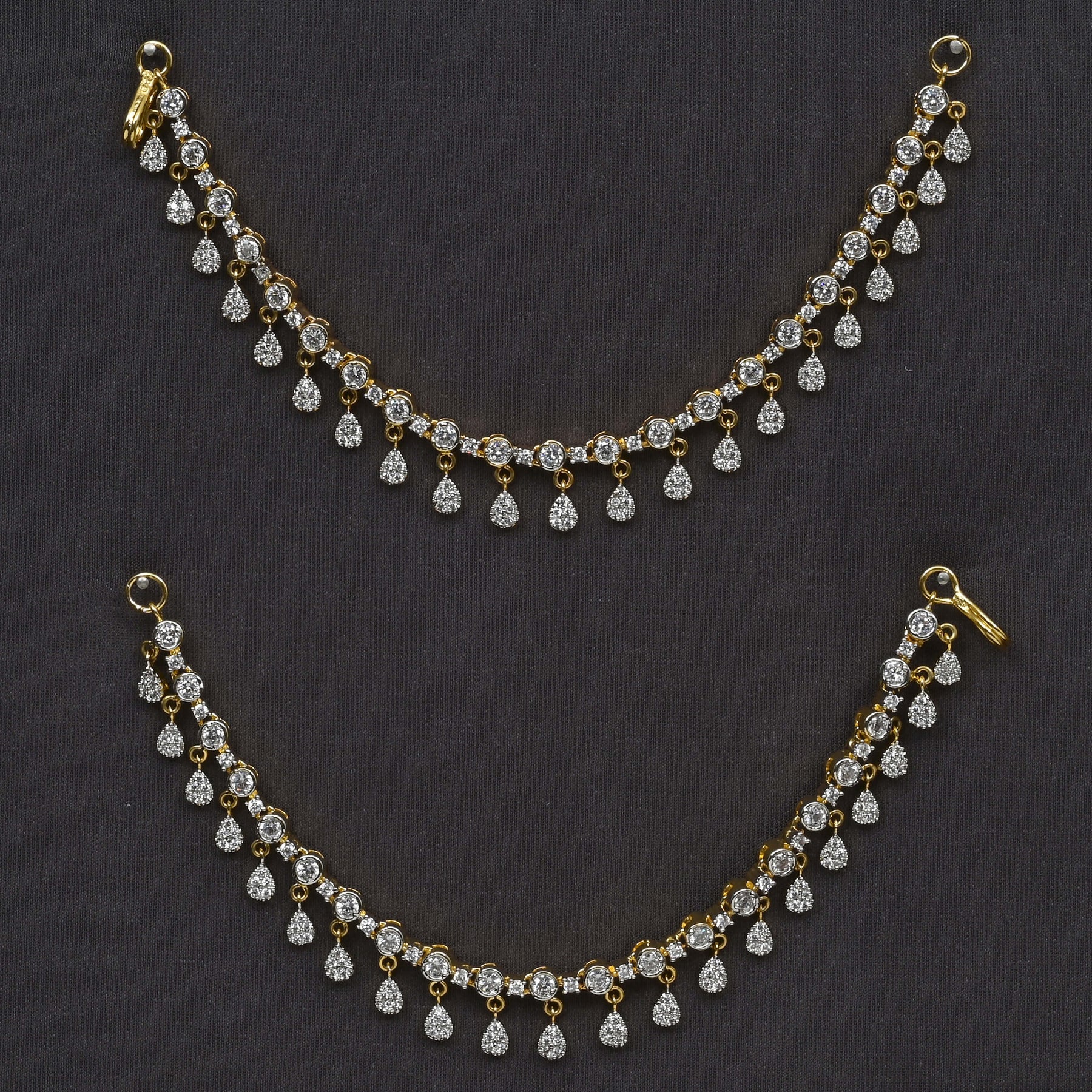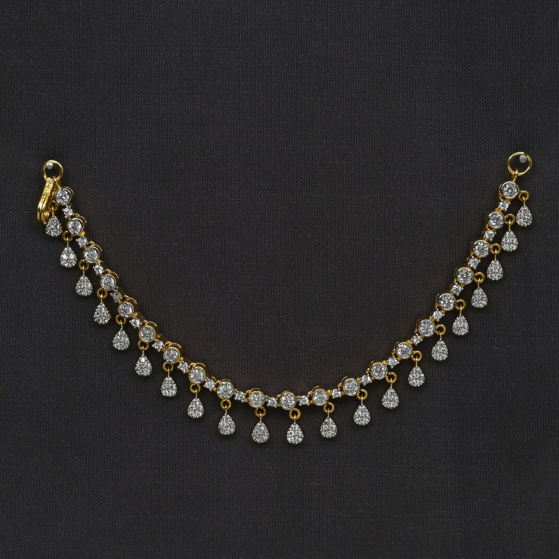Elevate your traditional attire with the CZ Diamond Finish Champasaralu, meticulously handcrafted to showcase genuine CZ stones that mimic the brilliance of real diamonds. This one-of-a-kind design offers an exquisite finish, combining the elegance of classic craftsmanship with the sparkle of premium materials, making it a refined choice for any special occasion.
