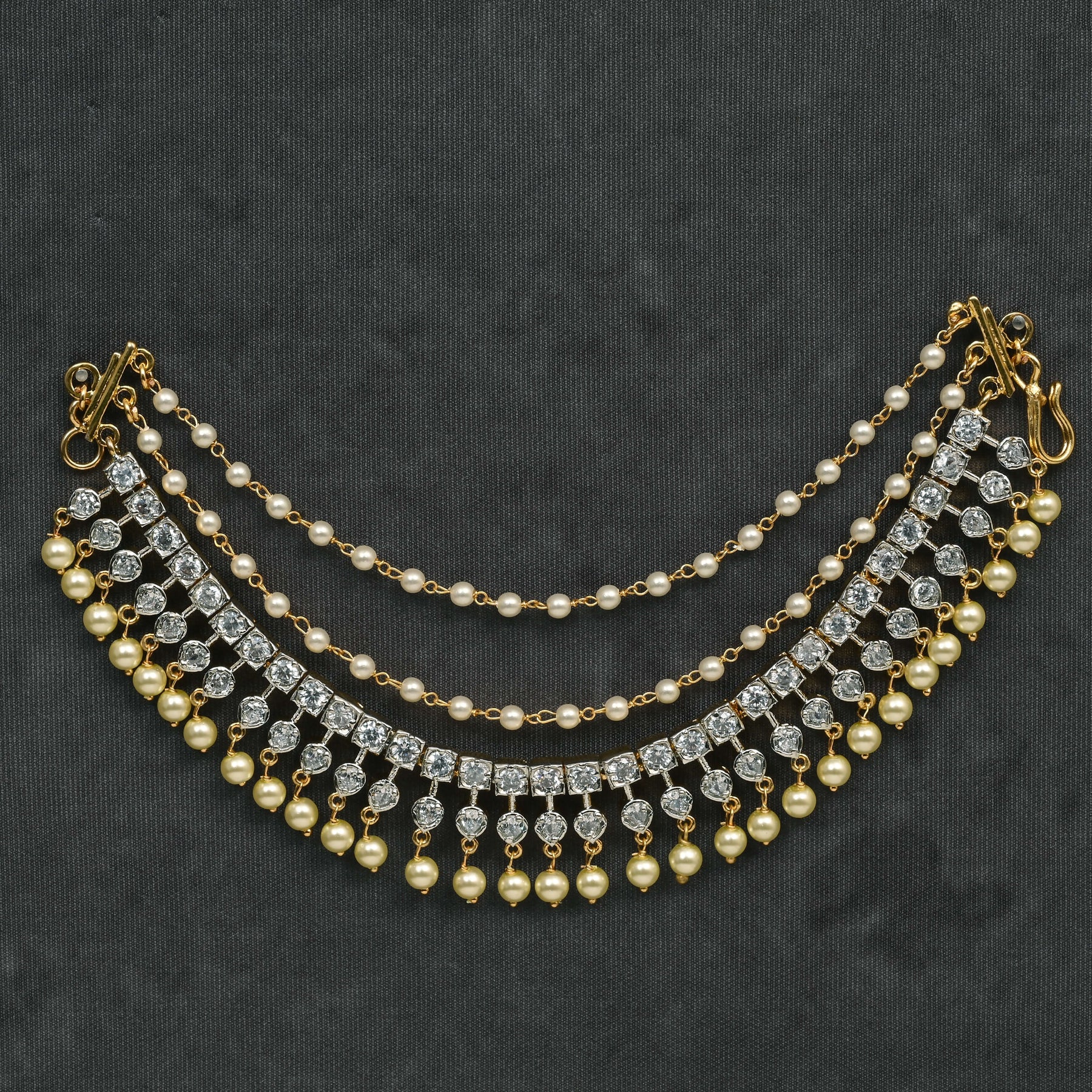 Experience the elegance of our CZ Diamond Finish Champasaralu, expertly handcrafted with genuine CZ stones that mimic the brilliance of real diamonds. Each piece features a unique design, ensuring a one-of-a-kind look that enhances your traditional attire with lasting sparkle and sophistication. Perfect for special occasions, these champasaralu offer the exquisite appeal of fine jewelry with durable craftsmanship.