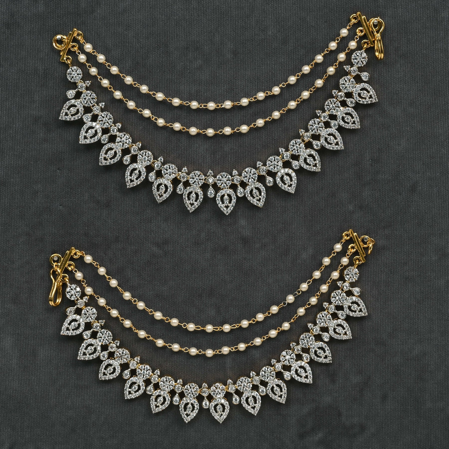 Experience elegance with the CZ Diamond Finish Champasaralu, featuring meticulously handcrafted real CZ stones that mimic the brilliance of genuine diamonds. Each piece showcases a unique, one-of-a-kind design that blends timeless craftsmanship with modern sophistication, offering the perfect sparkle and durability for discerning jewelry enthusiasts.