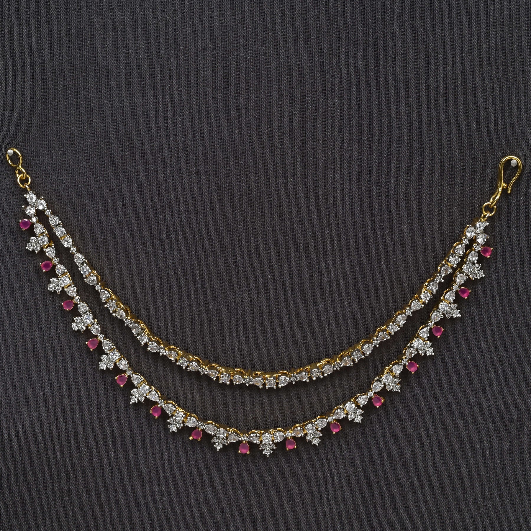 Experience the elegance of our CZ Ruby Champasaralu, expertly handcrafted with genuine cubic zirconia stones that capture the brilliance of real diamonds. Each piece showcases a unique design, offering a one-of-a-kind look that complements traditional attire with a modern sparkle. Perfect for special occasions, this jewelry combines timeless craftsmanship with the unmatched clarity and shine of high-quality CZ stones.