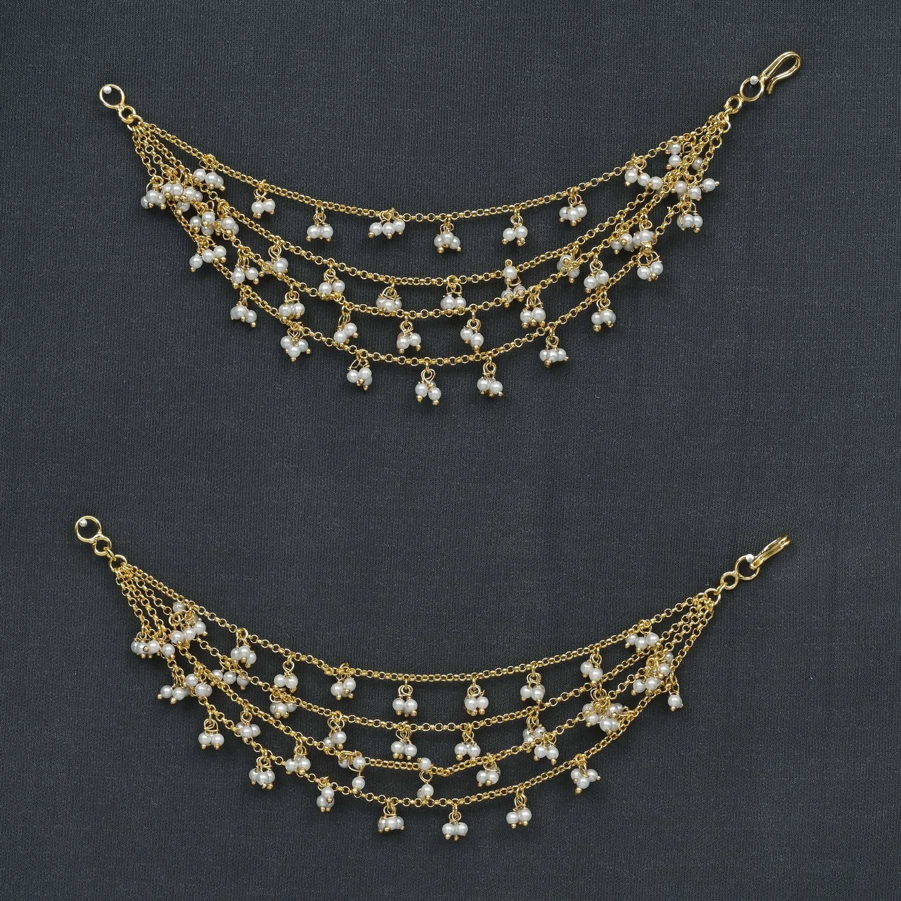 Pearl Champasaralu showcase expertly handcrafted elegance with their traditional design, featuring lustrous pearl strands. Each piece is uniquely crafted, bringing a one-of-a-kind charm that enhances any ensemble. Ideal for those who appreciate timeless craftsmanship and authentic heritage in their jewelry collection.