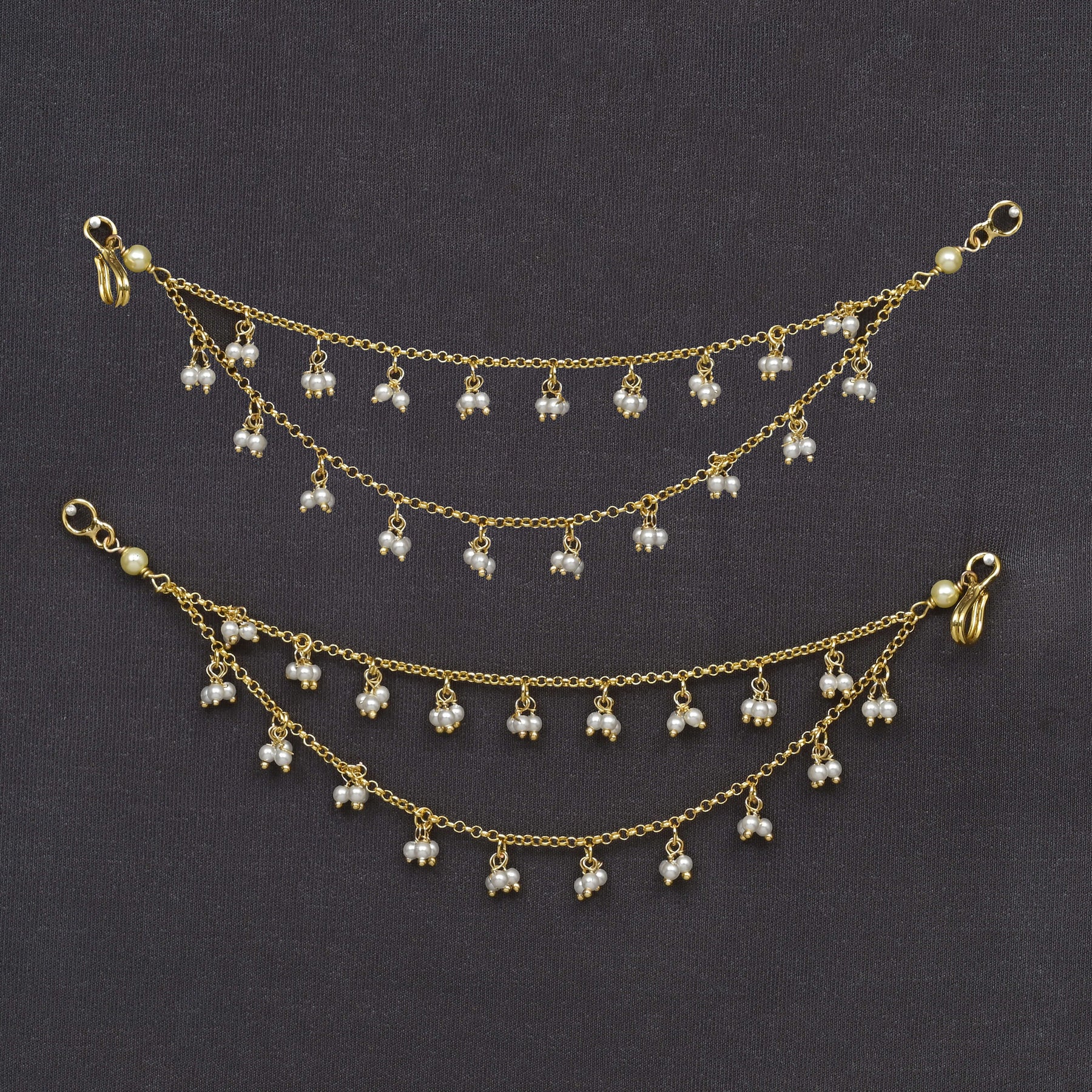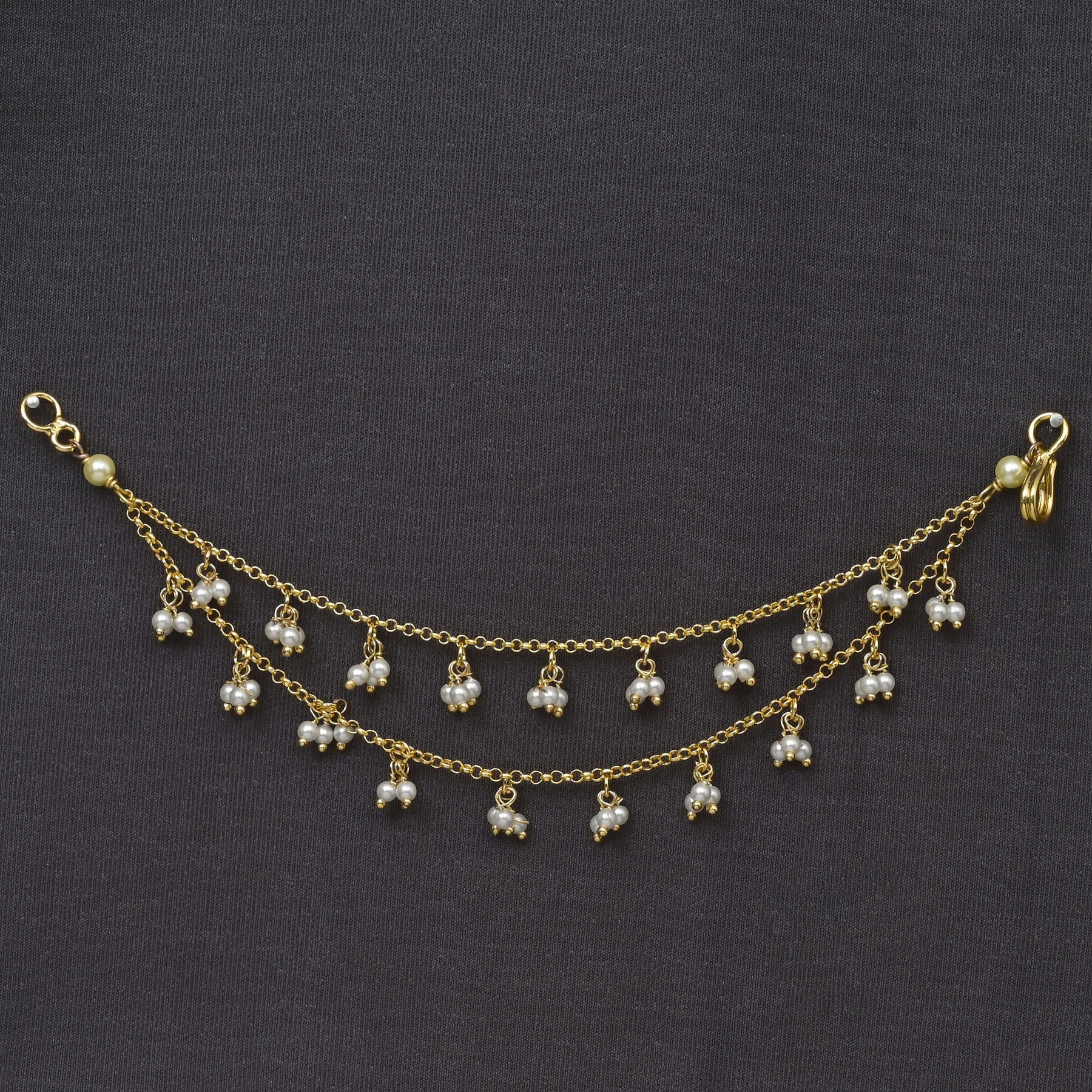 Pearl Champasaralu showcases exquisite craftsmanship with its handcrafted design, reflecting a rich traditional aesthetic. Featuring elegant pearl strands, each piece is uniquely created to offer a one-of-a-kind accessory that complements cultural attire with timeless grace and sophistication.