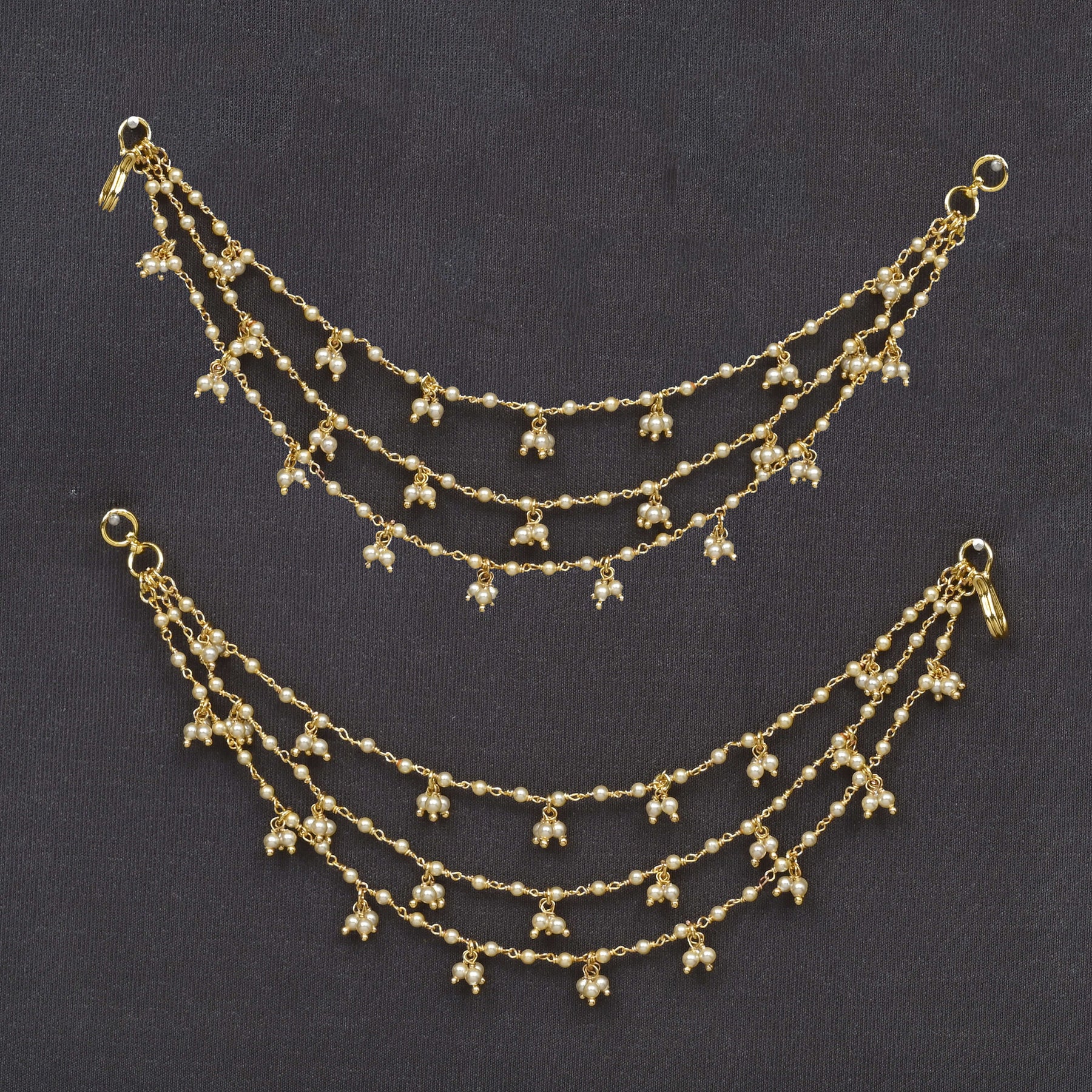Pearl Champasaralu showcases exquisite craftsmanship with its handcrafted pearl strands, reflecting a timeless traditional aesthetic. Each piece features a unique, one-of-a-kind design that complements elegant attire while highlighting refined artistry. Perfect for those seeking a distinctive and classic accessory.
