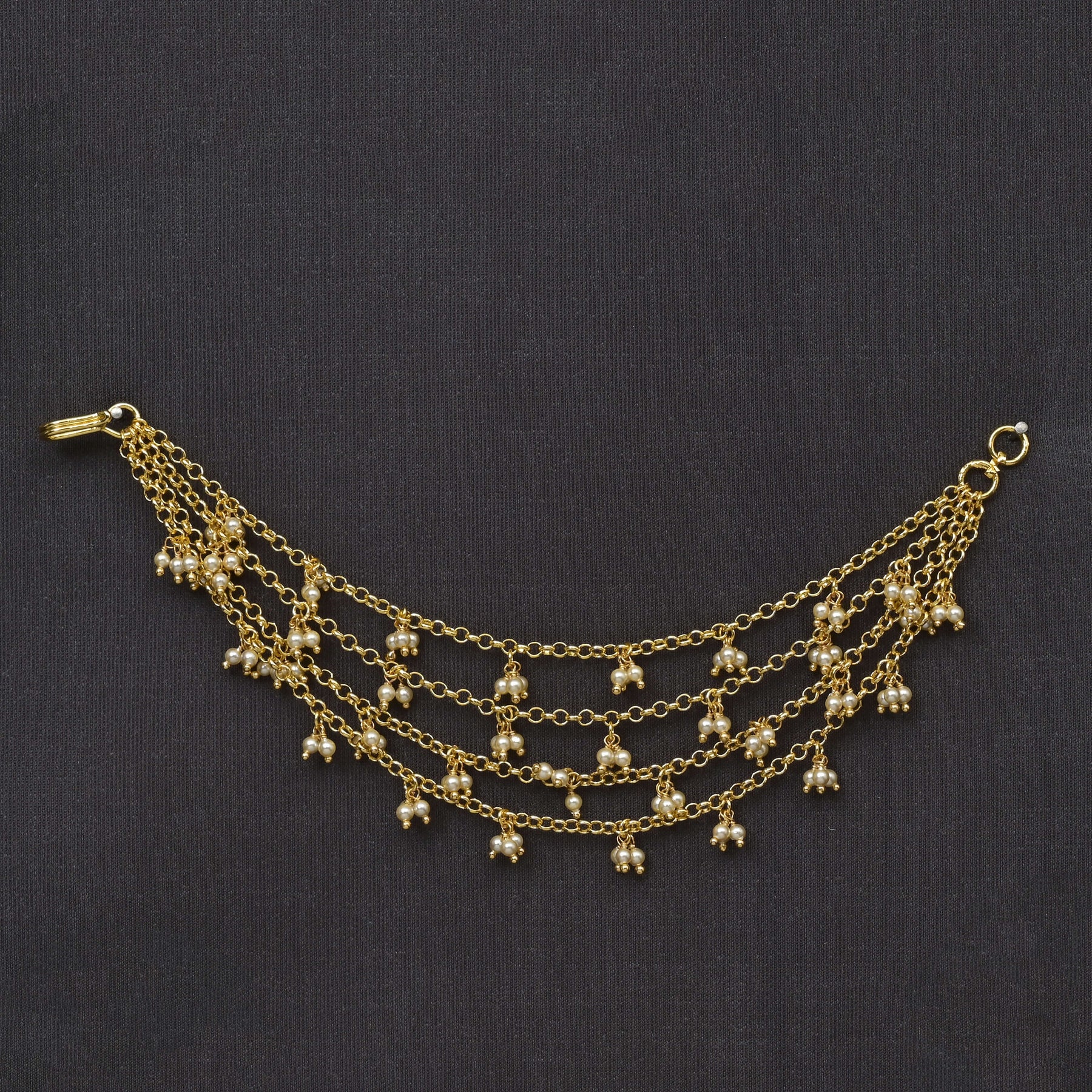 Pearl Champasaralu showcases exquisite craftsmanship with its handcrafted design, embodying a traditional aesthetic. Featuring elegant pearl strands, each piece offers a unique, one-of-a-kind look that enhances any ethnic ensemble with timeless sophistication. Perfect for those who appreciate heritage jewelry with a refined touch.