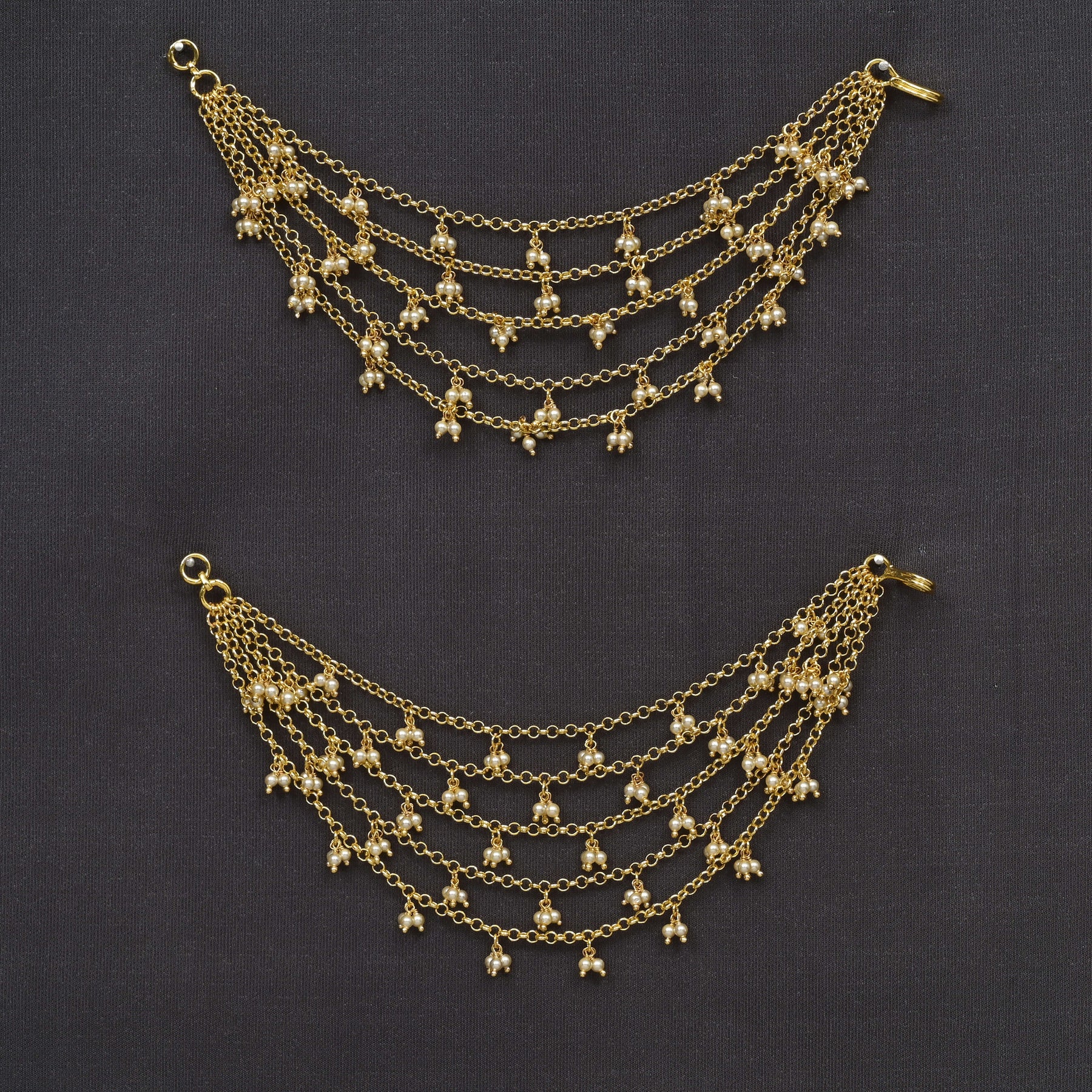 Pearl Champasaralu showcases exquisite handcrafted artistry, featuring elegant pearl strands that create a timeless traditional look. Each piece is uniquely designed, making it a one-of-a-kind addition to your collection. Perfect for those who appreciate expert craftsmanship and classic style.