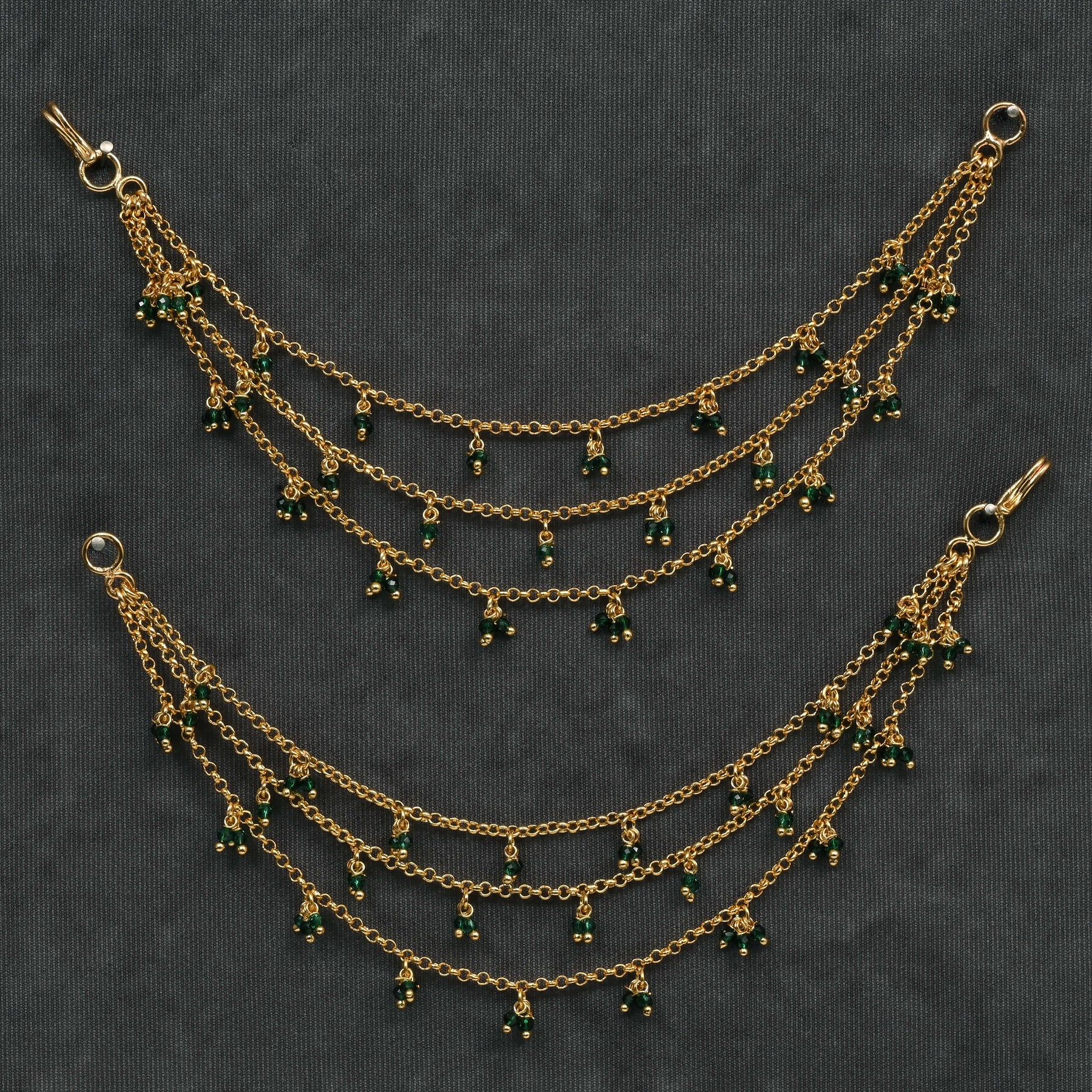 Pearl Champasaralu showcases exquisite handcrafted artistry with its traditional design, featuring delicate strands of lustrous pearls. Each piece is uniquely crafted, embodying timeless elegance and cultural heritage. Perfect for those seeking a distinctive accessory that honors classic beauty with one-of-a-kind charm.