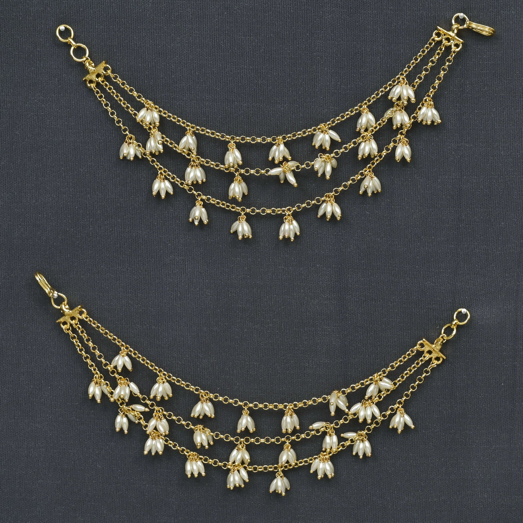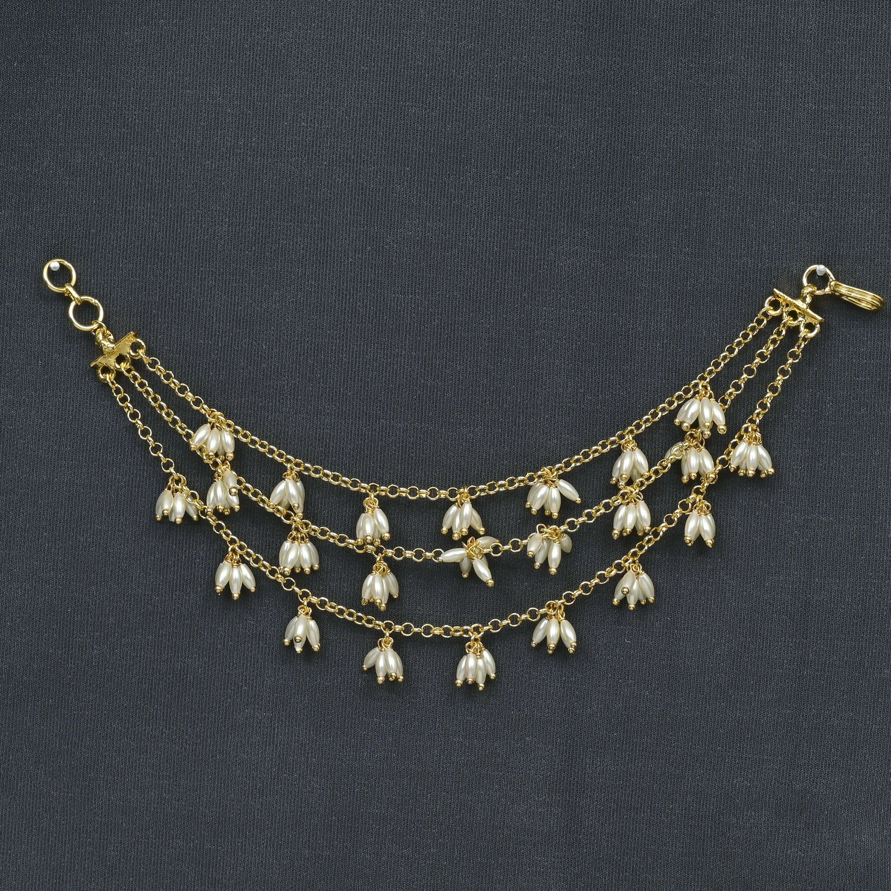 Pearl Champasaralu features handcrafted elegance with a traditional design that highlights lustrous pearl strands. Each piece is uniquely crafted to offer you a one-of-a-kind accessory that complements classic attire with timeless beauty and expert craftsmanship. Perfect for those seeking an authentic, refined look with exceptional detailing.