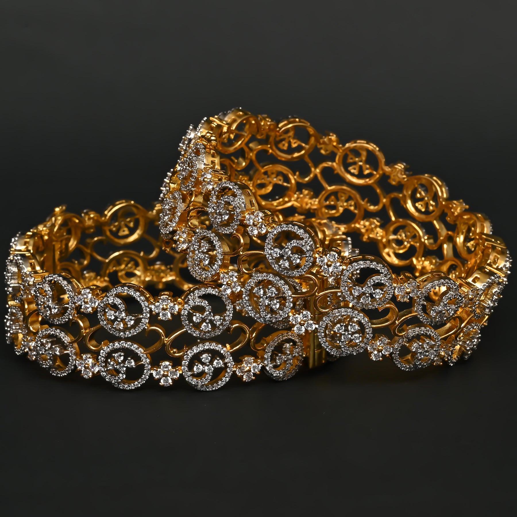 These handcrafted CZ Diamond Finish Bangles feature real CZ stones that mimic the brilliance of diamonds. Designed with a unique, one-of-a-kind style, they include a side screw mechanism for easy wear and secure fit, combining elegance with practical functionality. Ideal for those seeking refined sparkle without compromise.