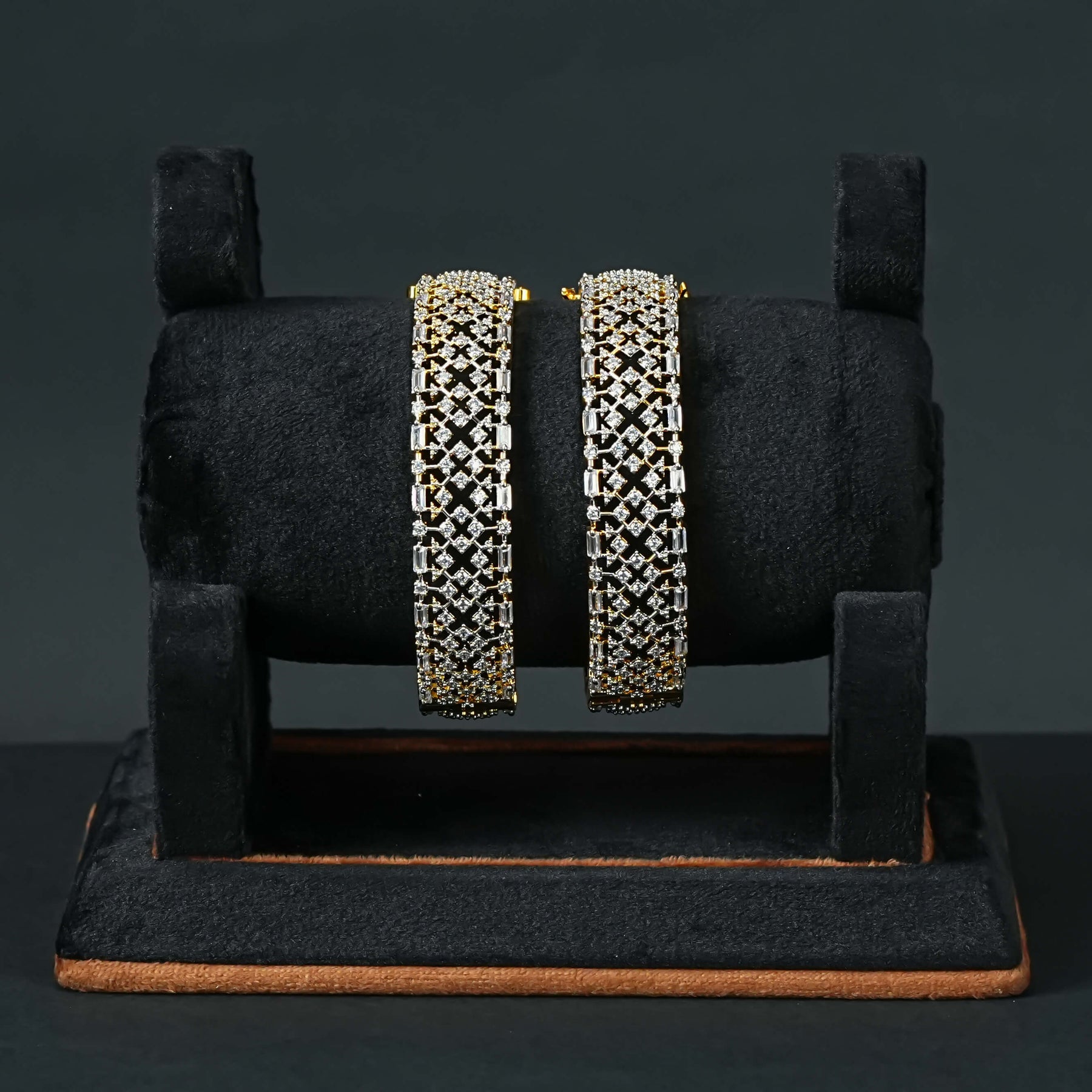 These CZ Diamond Finish Bangles showcase exquisite craftsmanship with real cubic zirconia stones, offering a dazzling diamond-like brilliance. The unique one-of-a-kind design features a side screw closure, ensuring effortless wear and secure fit. Handcrafted to perfection, these bangles blend elegance with practical functionality, making them an exceptional addition to any refined jewelry collection.