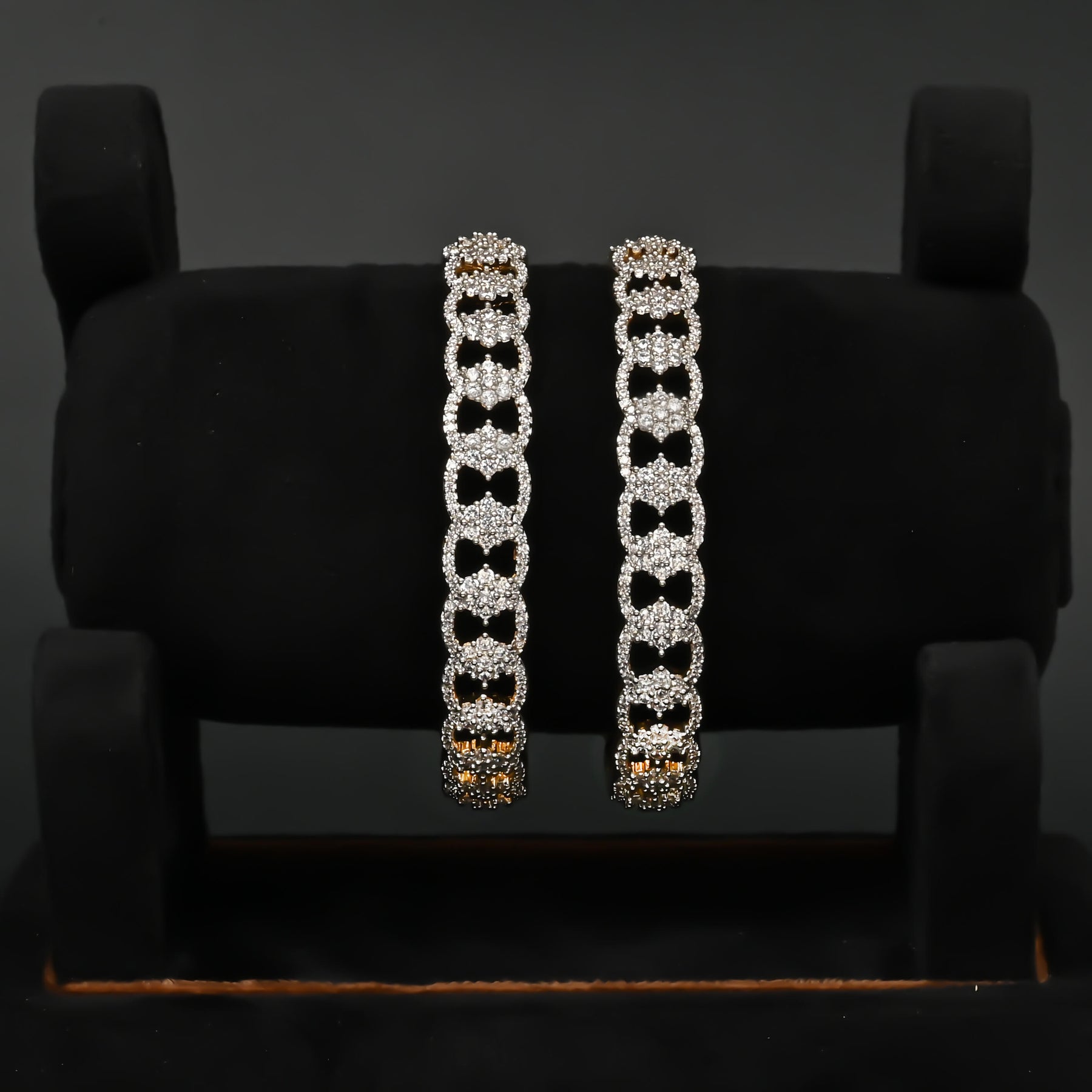 These handcrafted CZ Diamond Finish Bangles feature genuine cubic zirconia stones, expertly set to create a dazzling effect. Designed with a convenient side screw, they ensure easy wear and secure fit. Each bangle boasts a unique, one-of-a-kind design, reflecting meticulous craftsmanship for a flawless, elegant accessory.