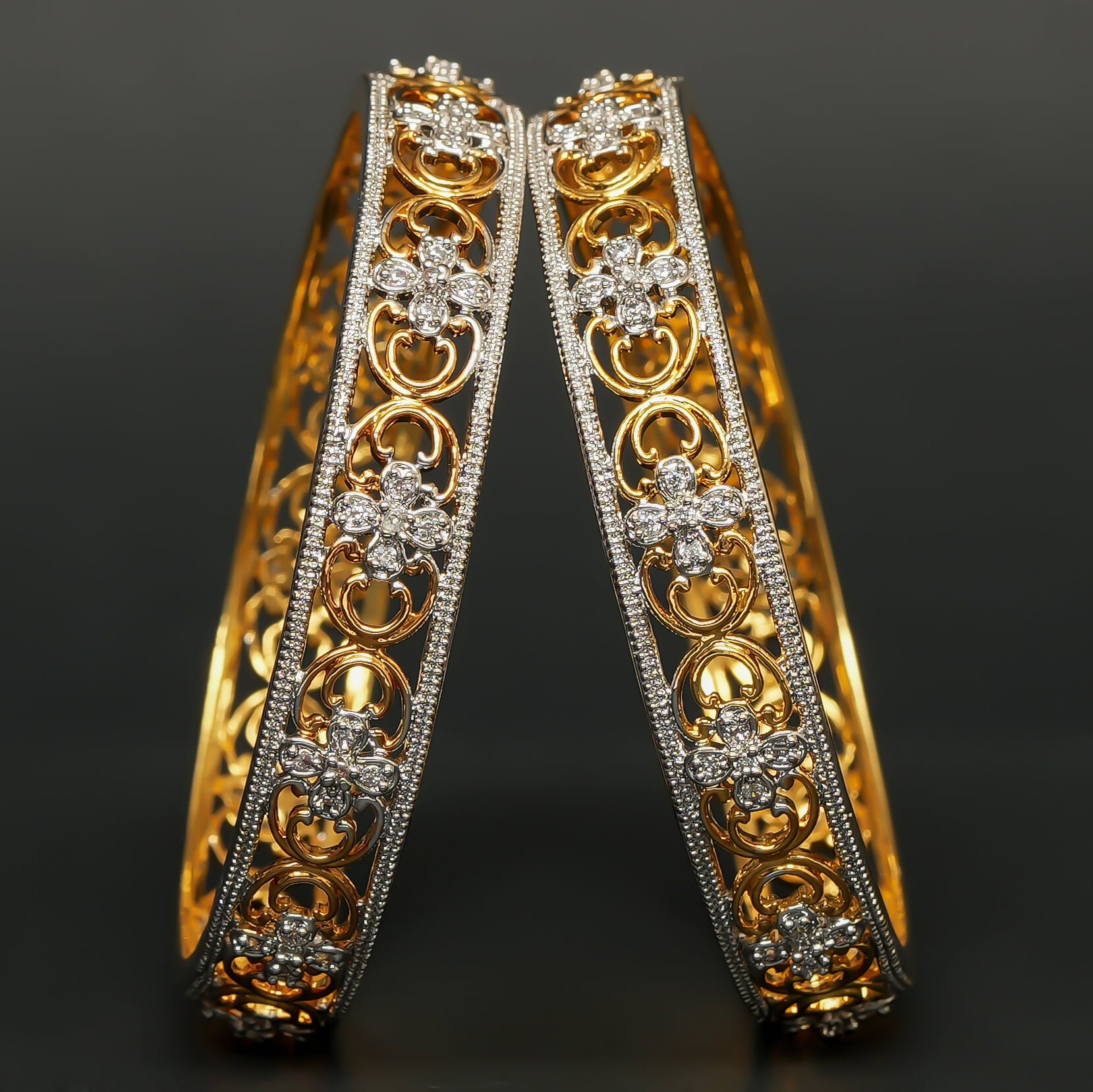 These CZ bangles showcase exquisite craftsmanship with real cubic zirconia stones set in a diamond-finish design. Each piece is handcrafted to ensure uniqueness, featuring a discreet side screw mechanism for effortless wearing and removal. Combining elegance with convenience, these one-of-a-kind bangles elevate any ensemble with sparkling sophistication.