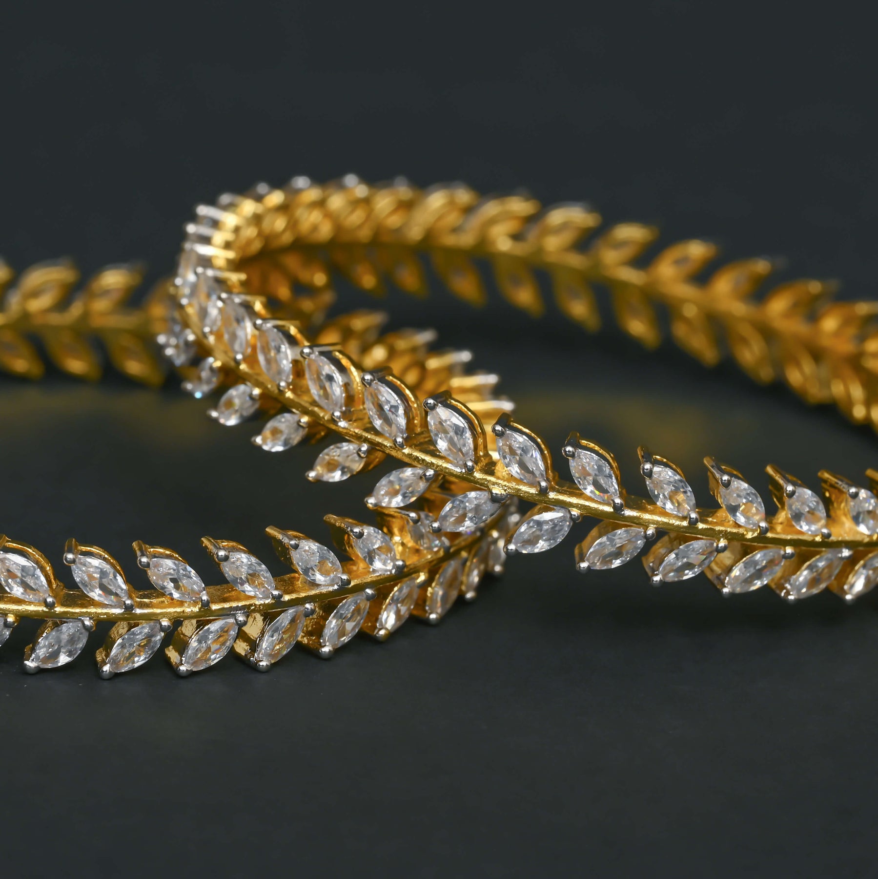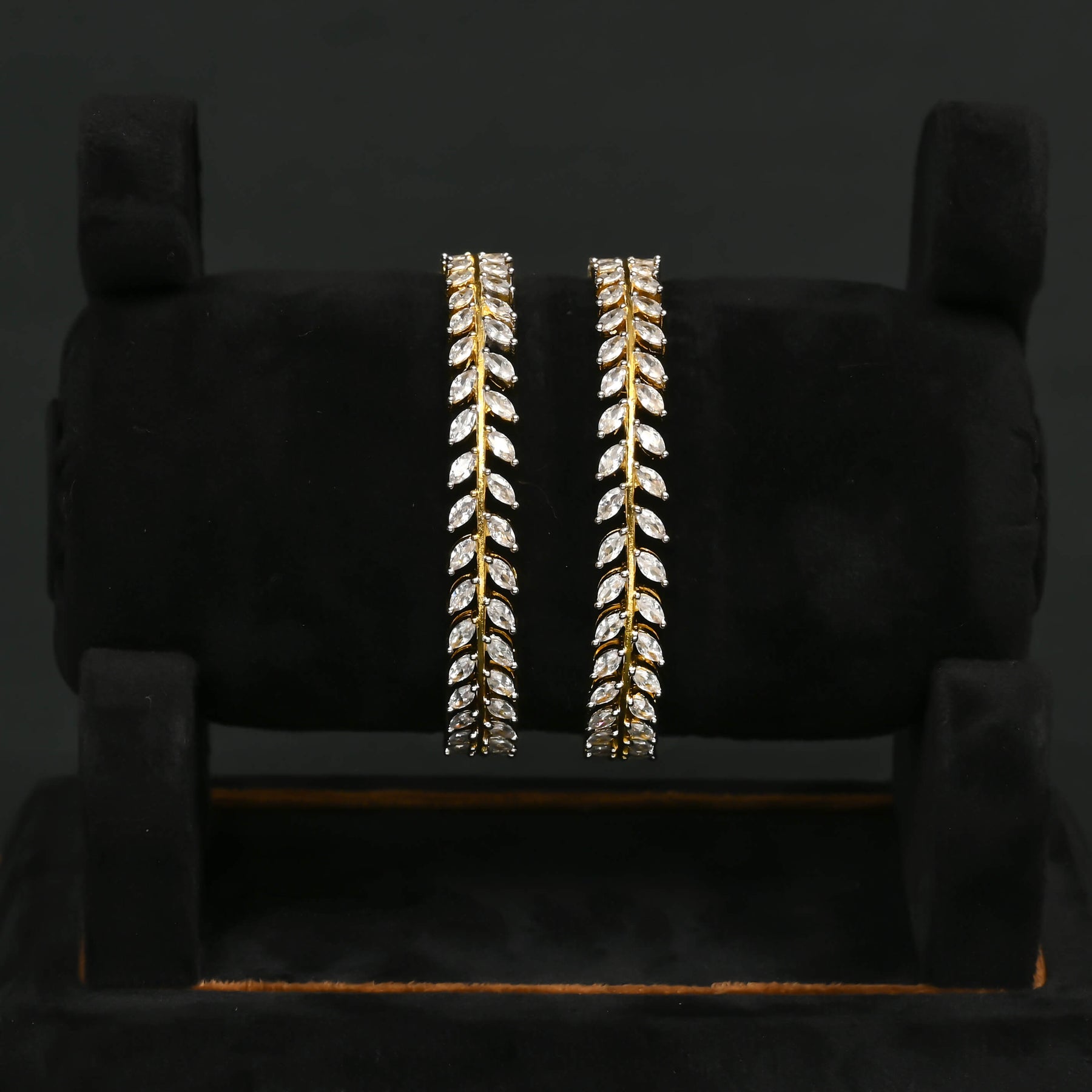These CZ Diamond Finish Bangles showcase expertly handcrafted design with genuine CZ stones, offering a stunning diamond-like brilliance. Featuring a unique one-of-a-kind style and a convenient side screw mechanism, they ensure easy wearing without compromising elegance. Perfect for adding a touch of sophisticated sparkle to any ensemble.
