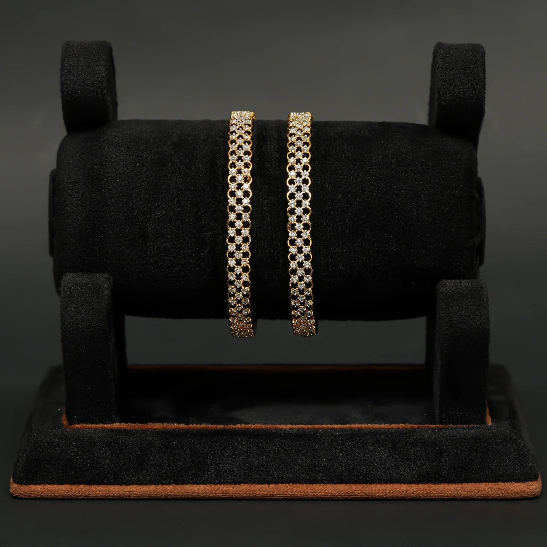 These CZ Diamond Finish Bangles showcase expertly handcrafted artistry, featuring genuine cubic zirconia stones that mimic the brilliance of diamonds. Designed with a unique one-of-a-kind pattern, they include a side screw mechanism for effortless wear and secure fit. Perfect for those seeking elegant, durable jewelry with intricate detailing, these bangles combine timeless style with practical functionality.