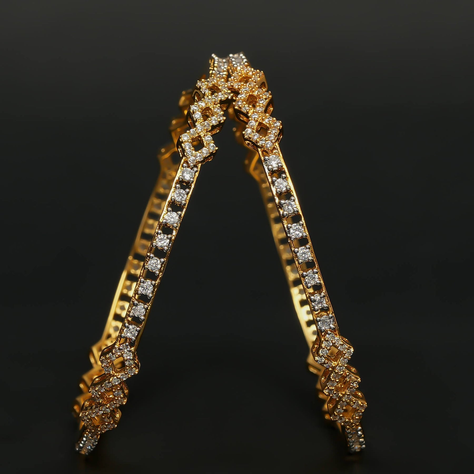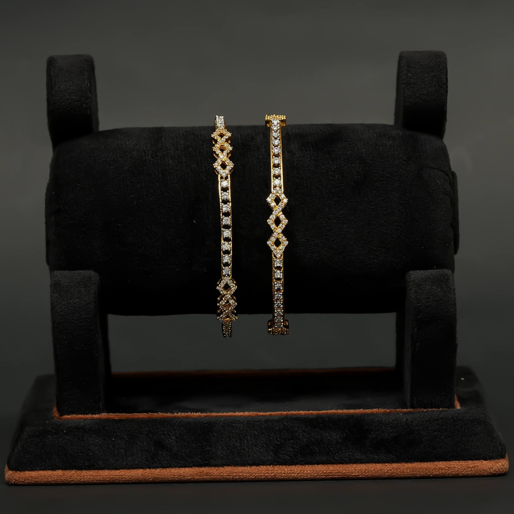 These CZ Diamond Finish Bangles feature expertly handcrafted designs with real cubic zirconia stones, creating an exquisite diamond-like sparkle. The unique one-of-a-kind design ensures exclusivity, while the side screw mechanism allows for secure and easy wear. Perfect for adding elegance and brilliance to any occasion, these bangles combine craftsmanship with convenience for a refined accessory experience.