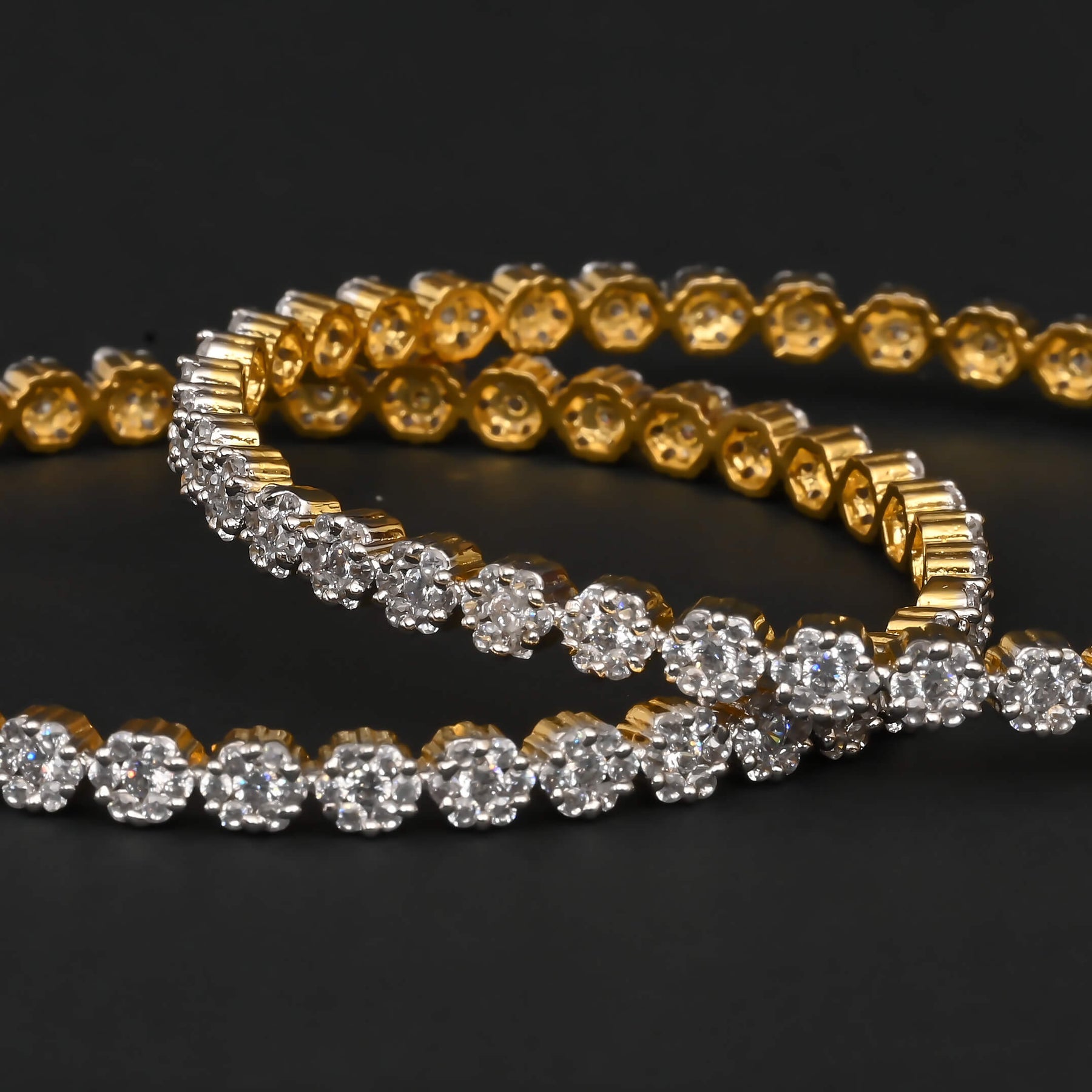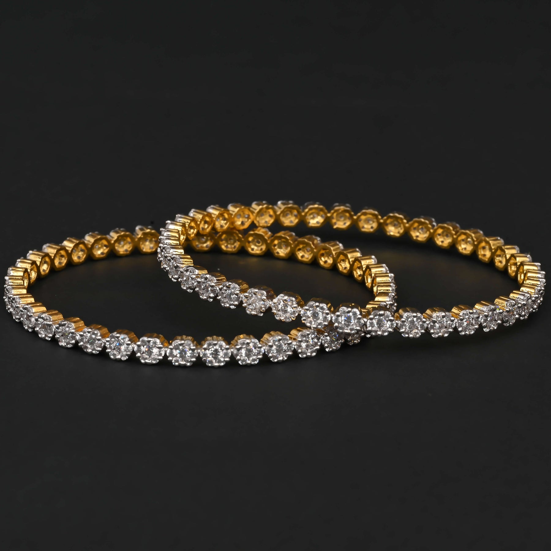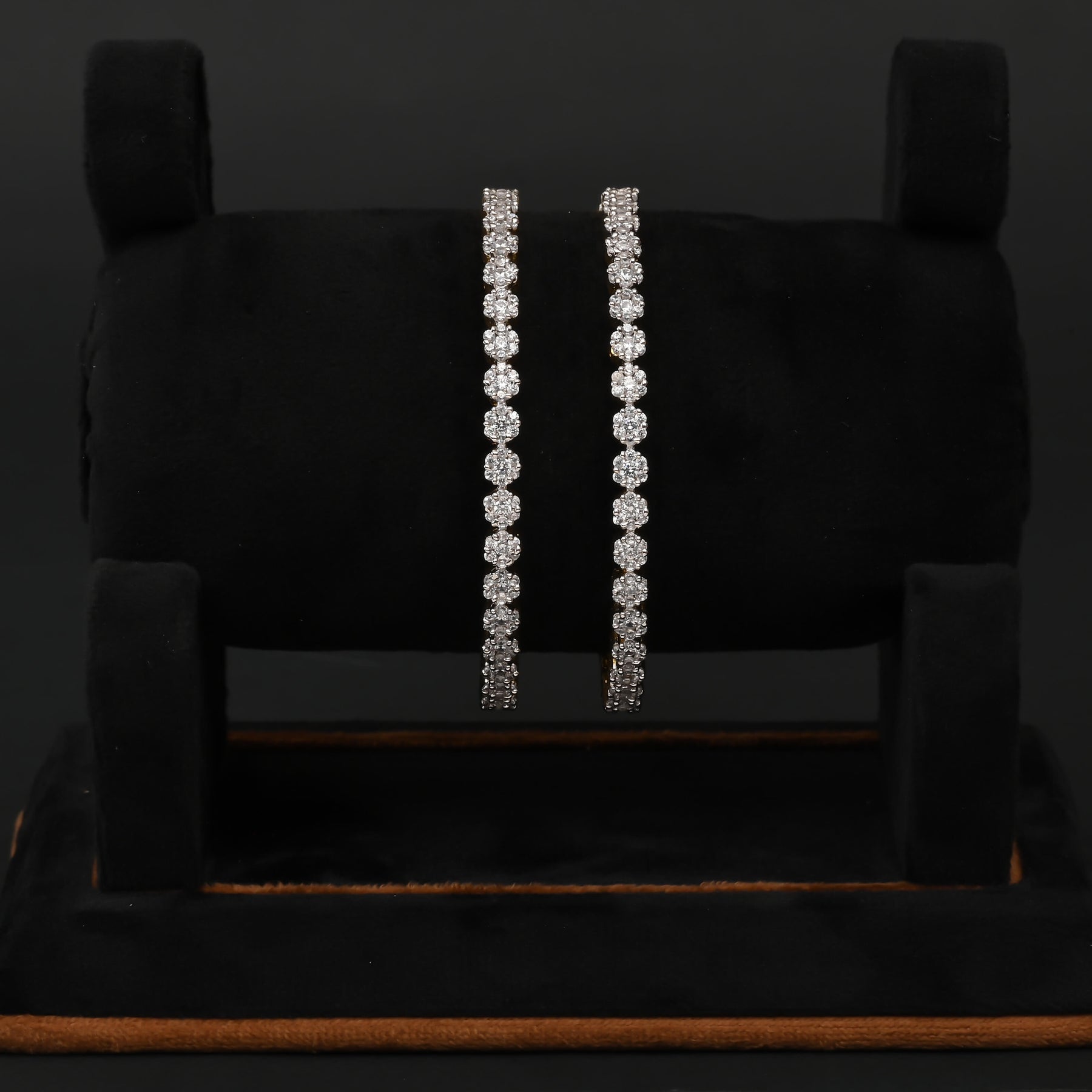 These CZ Diamond Finish Bangles showcase expertly handcrafted artistry, featuring genuine cubic zirconia stones that capture the brilliance of diamonds. Each bangle is a unique, one-of-a-kind design, reflecting meticulous attention to detail and timeless elegance. Perfect for adding a touch of refined sparkle to any ensemble.