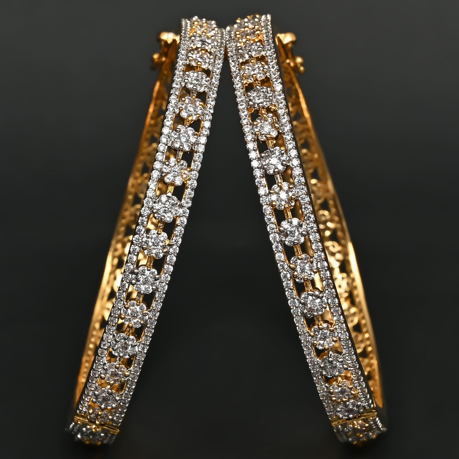 Elevate your style with these CZ Diamond Finish Bangles meticulously handcrafted for a one-of-a-kind appeal. Featuring real CZ stones that mimic the brilliance of diamonds, they offer luxurious sparkle without compromise. The innovative side screw design ensures easy wear and secure fit, blending convenience with elegance. Perfect for adding refined sophistication to any ensemble.