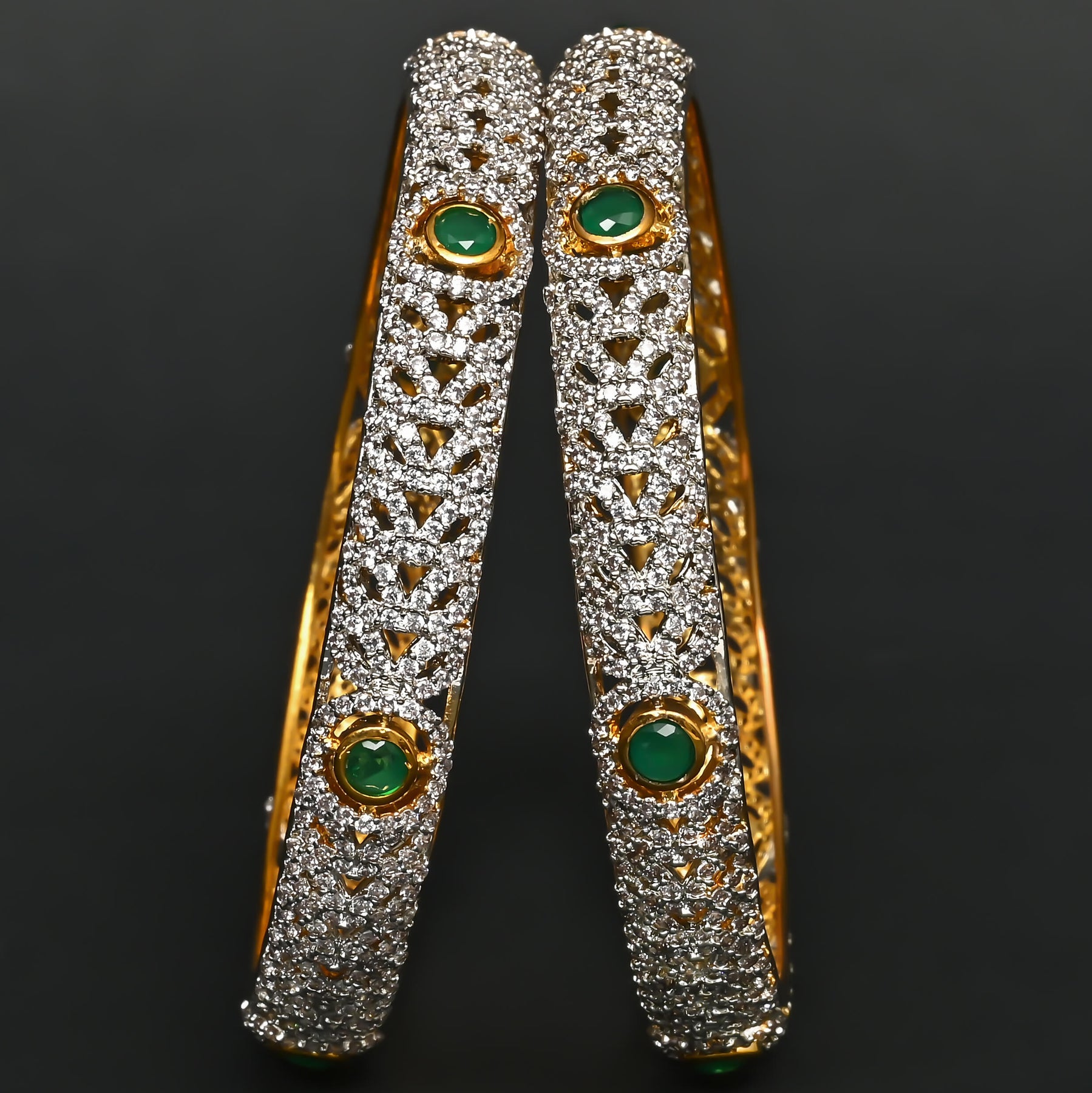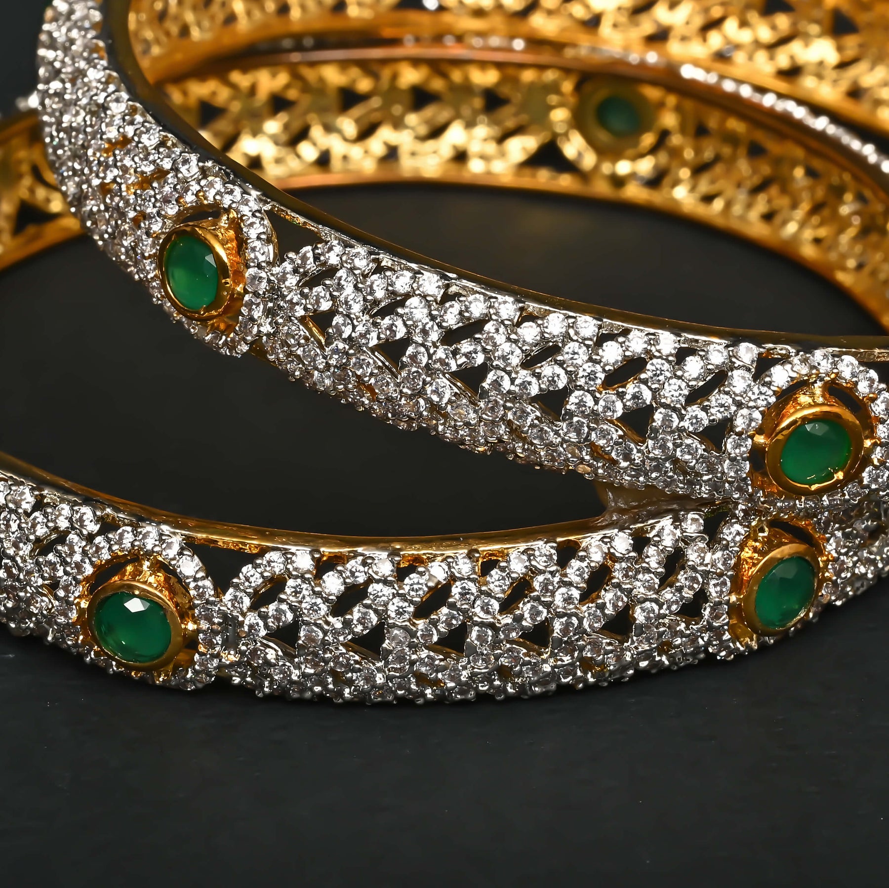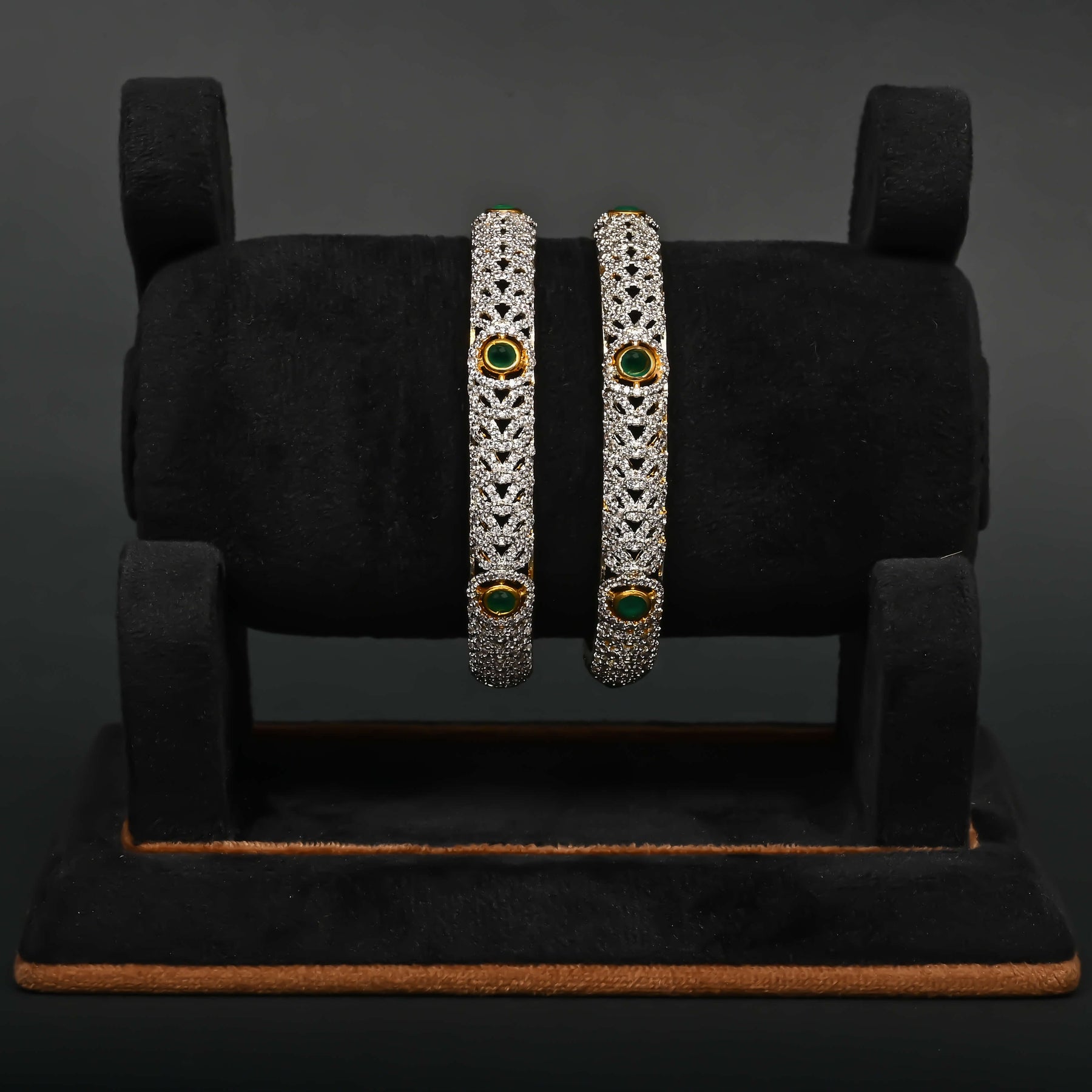 Experience elegance with these expertly handcrafted CZ Emerald Bangles, featuring real cubic zirconia stones set alongside semi-precious emeralds. Designed with a secure side screw, they ensure easy wear and a comfortable fit. Each piece showcases a unique, one-of-a-kind design with a refined diamond finish, perfect for sophisticated style and lasting beauty.