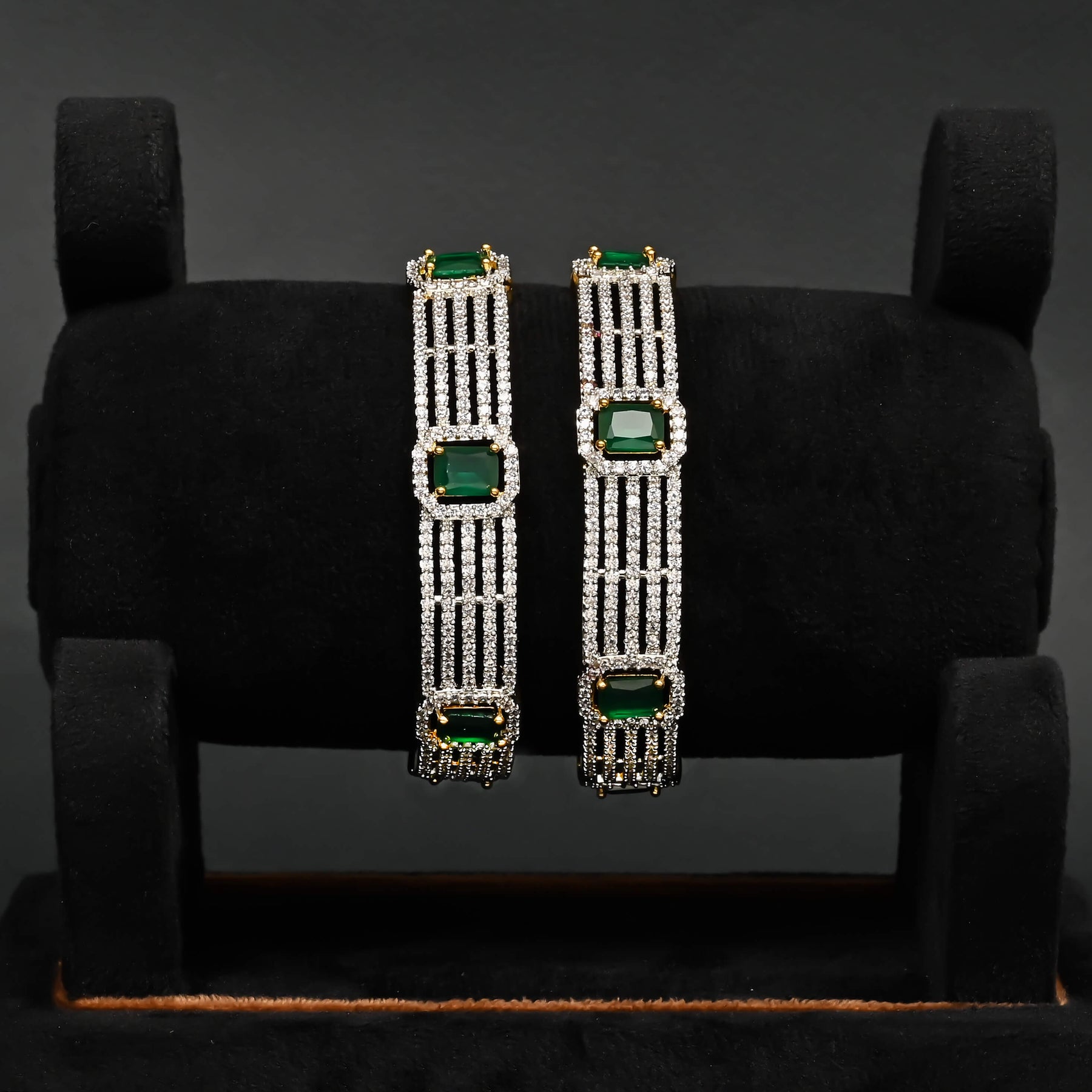 Elevate your collection with these expertly handcrafted CZ Emerald Bangles, featuring genuine cubic zirconia stones paired with semi-precious emeralds that add a refined touch of color. Designed with a convenient side screw, they ensure easy, secure wear without compromising elegance. Each piece is a unique creation, showcasing intricate workmanship and a one-of-a-kind design that highlights your sophisticated taste. Perfect for enhancing both everyday and special occasion looks.