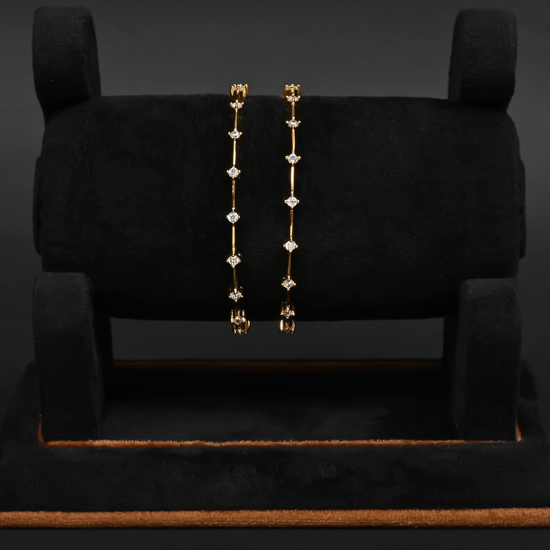 Elevate your style with these CZ Gold Finish Bangles, expertly handcrafted to showcase sparkling real CZ stones that mimic the brilliance of diamonds. Each bangle features a unique, one-of-a-kind design with a luxurious gold finish, blending classic elegance with superior craftsmanship. Ideal for adding a refined touch to any occasion, these bangles offer timeless beauty and lasting shine.