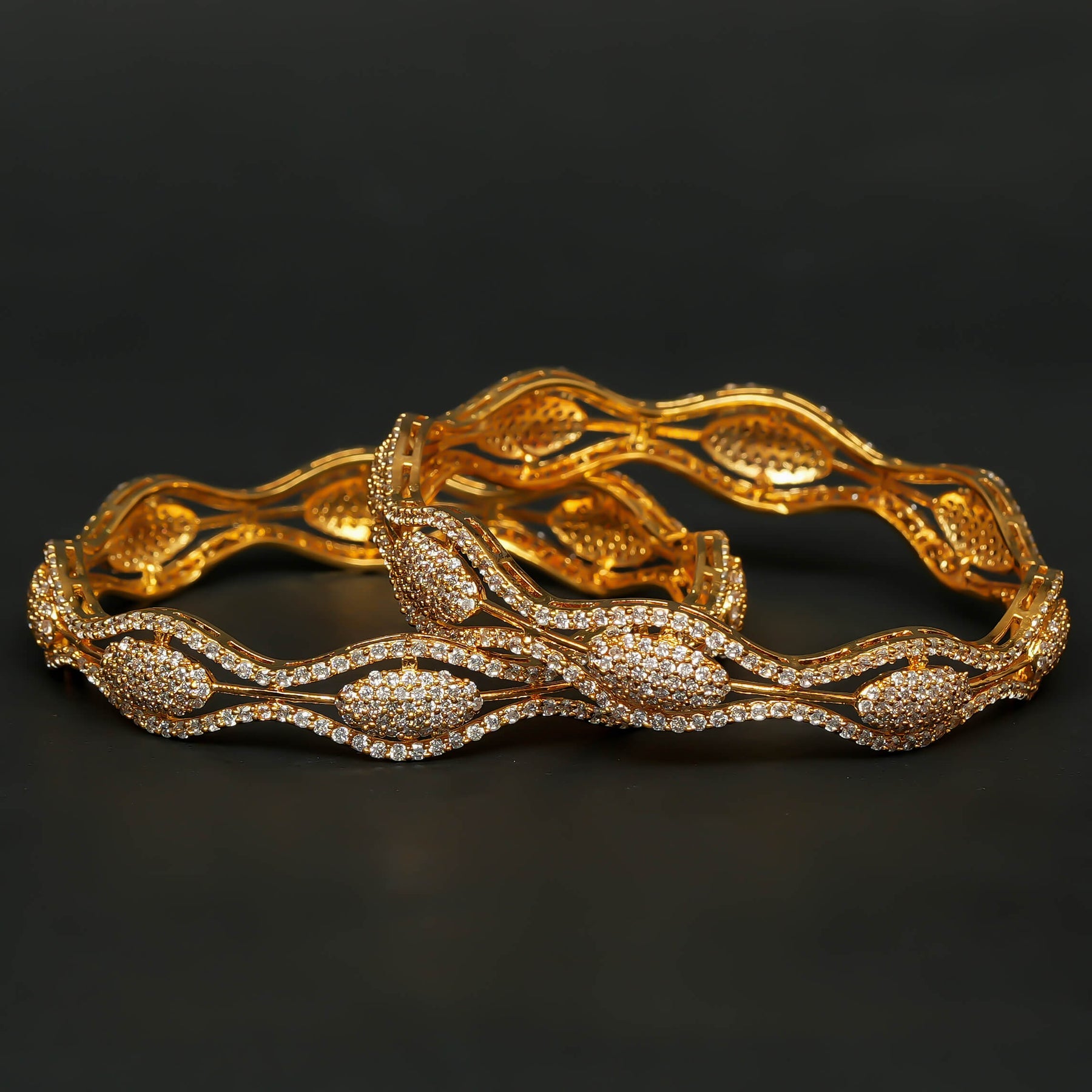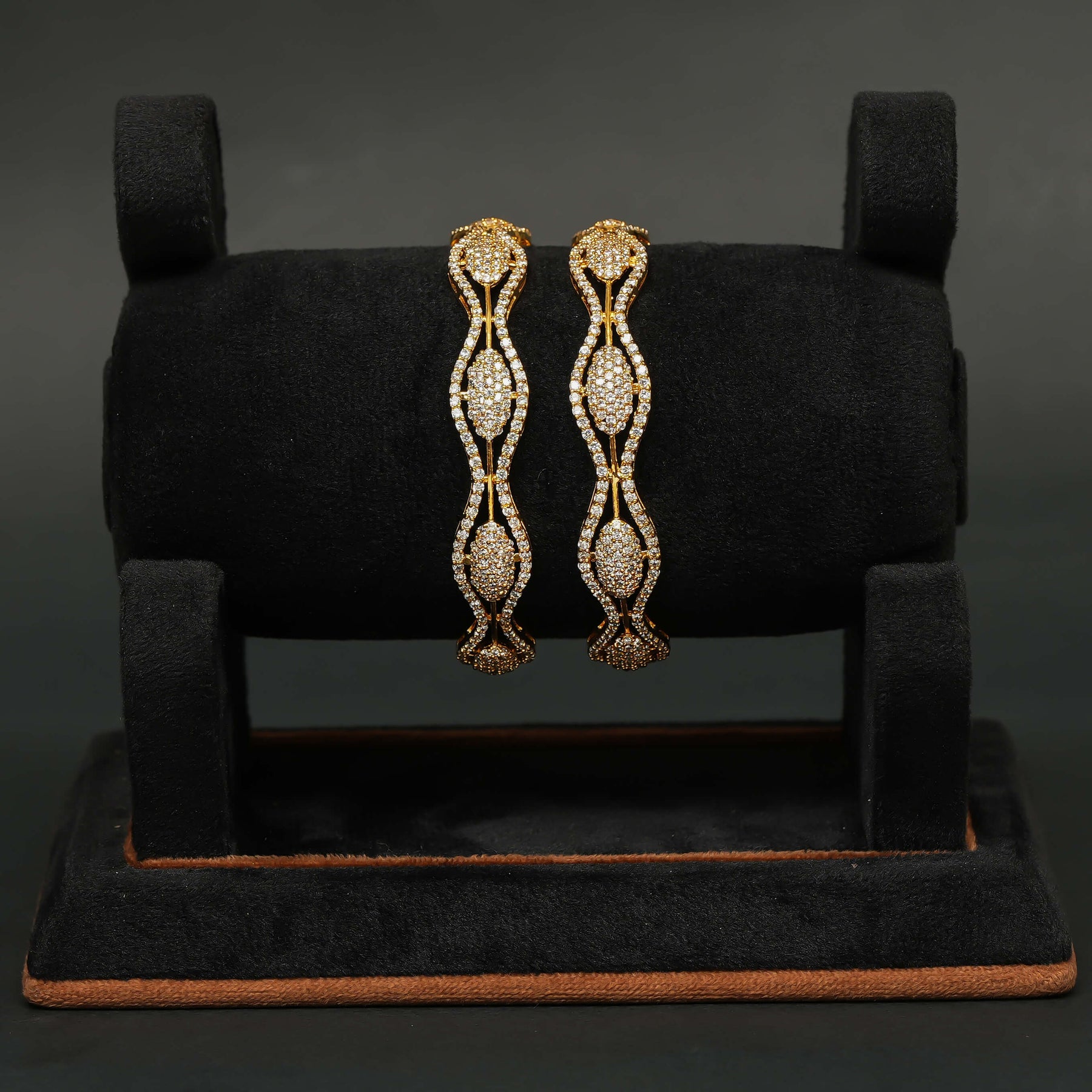 Elevate your collection with these expertly handcrafted CZ bangles in a radiant gold finish. Featuring genuine cubic zirconia stones, each bangle showcases a unique design that stands out. The practical side screw ensures effortless wear, combining style with convenience for a distinguished look.