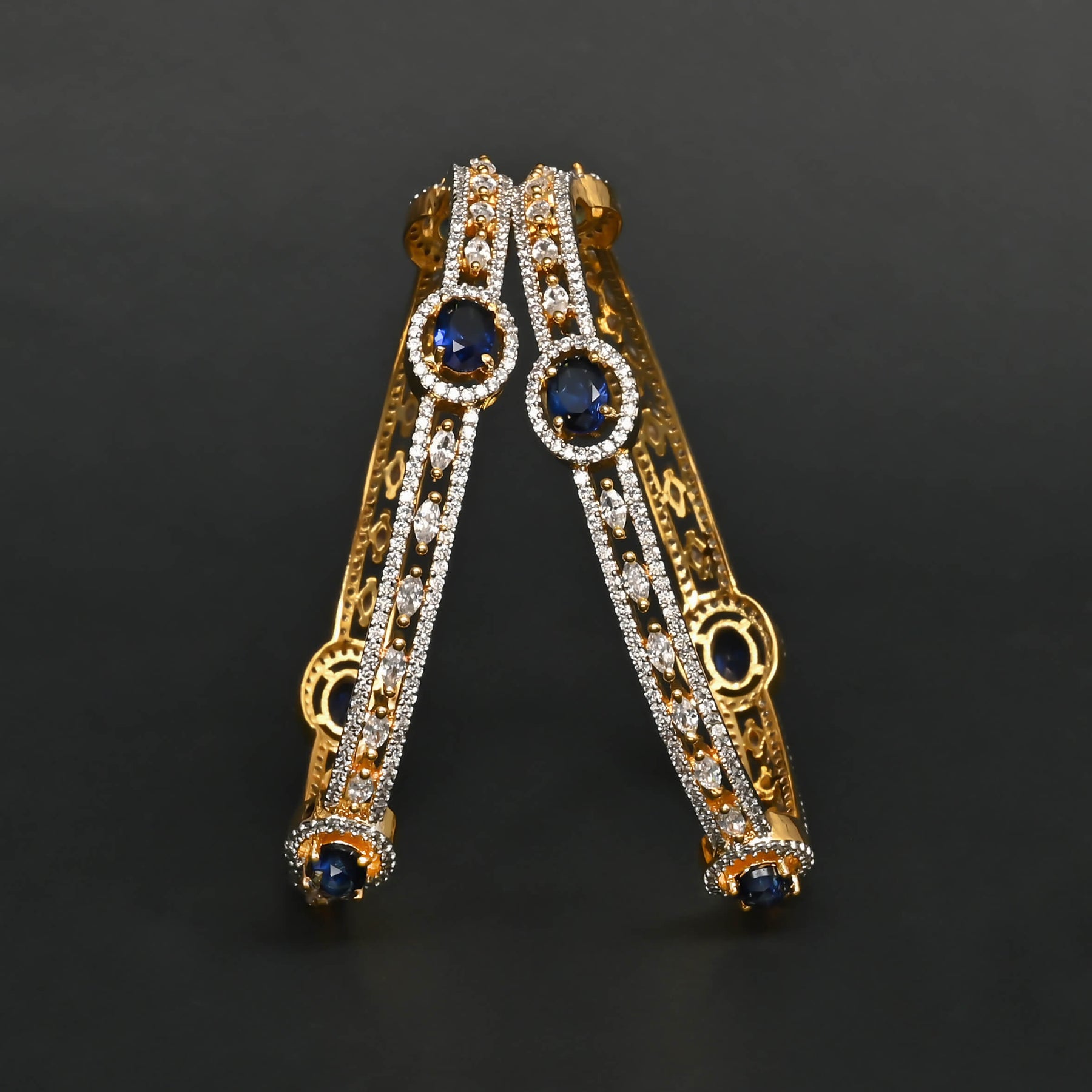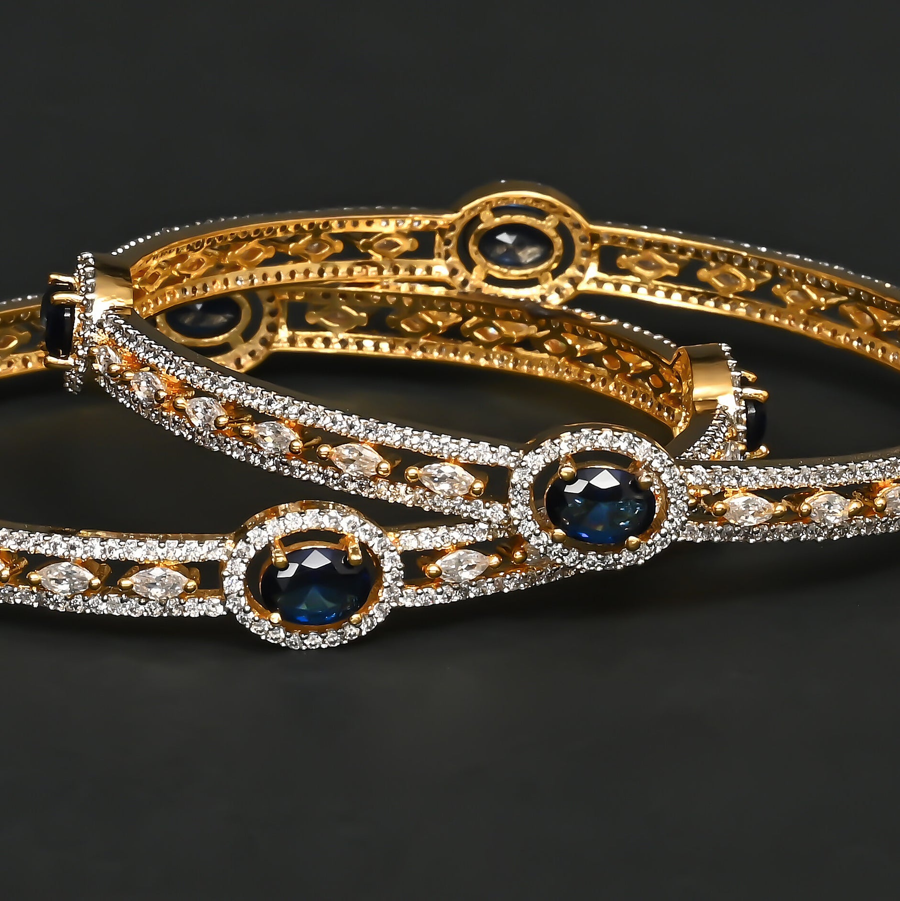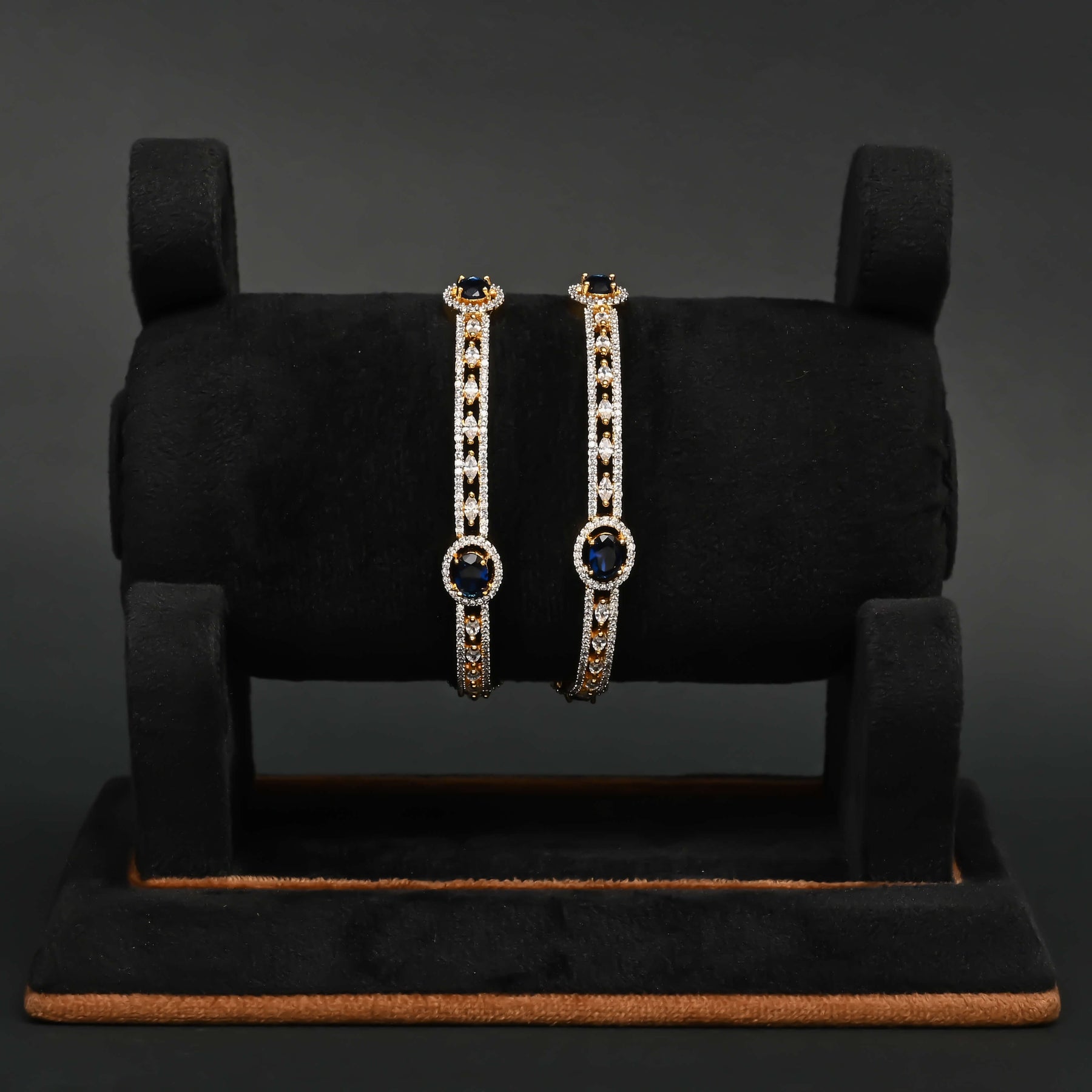 Elevate your elegance with these handcrafted CZ Sapphire Bangles, featuring genuine cubic zirconia stones in a diamond finish that radiate brilliance. Accented with semi-precious sapphire stones, each piece showcases a unique, one-of-a-kind design. Designed with a side screw for effortless wear, these bangles combine exquisite craftsmanship with practicality, making them a sophisticated addition to your jewelry collection.