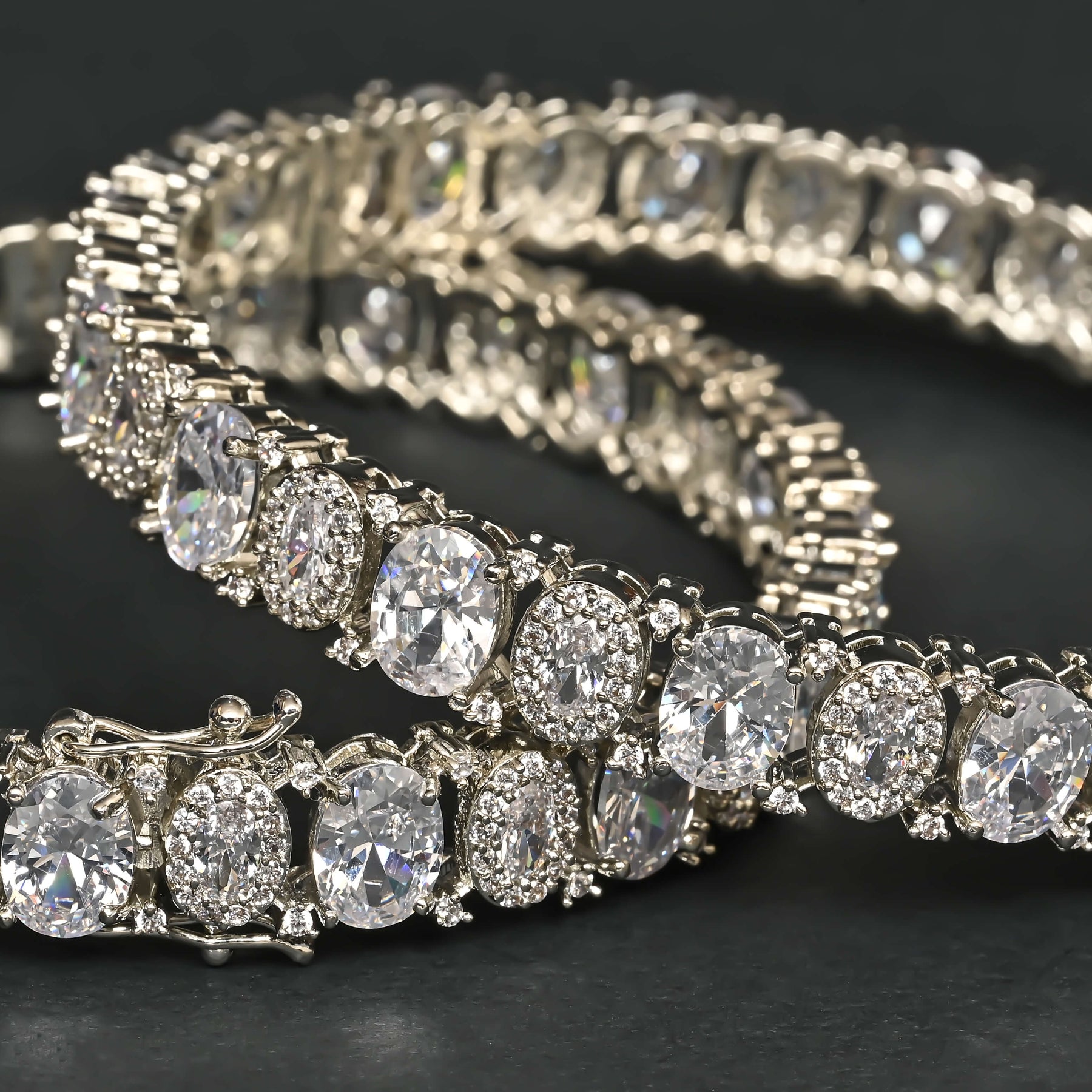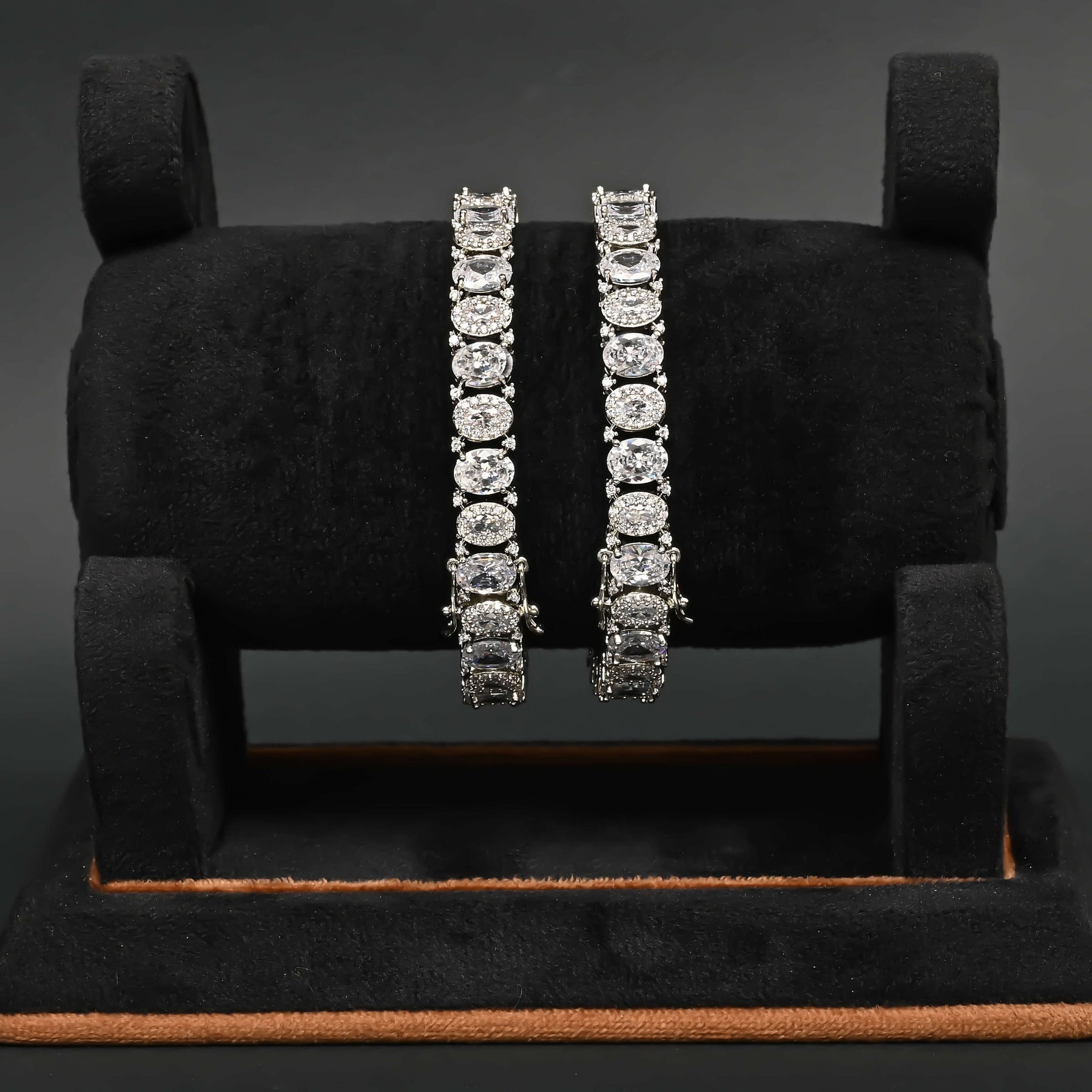 These CZ White Gold Bangles feature a handcrafted, one-of-a-kind design with a stunning white gold finish. Adorned with real CZ stones, they offer the brilliance and elegance reminiscent of diamonds. The innovative side clip open mechanism ensures easy and secure wear, combining style with practicality for refined sophistication.