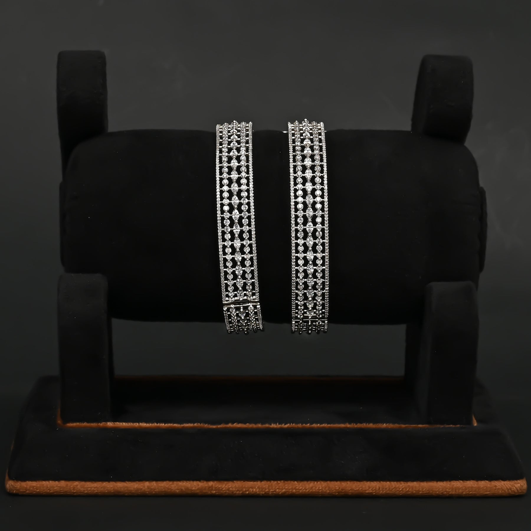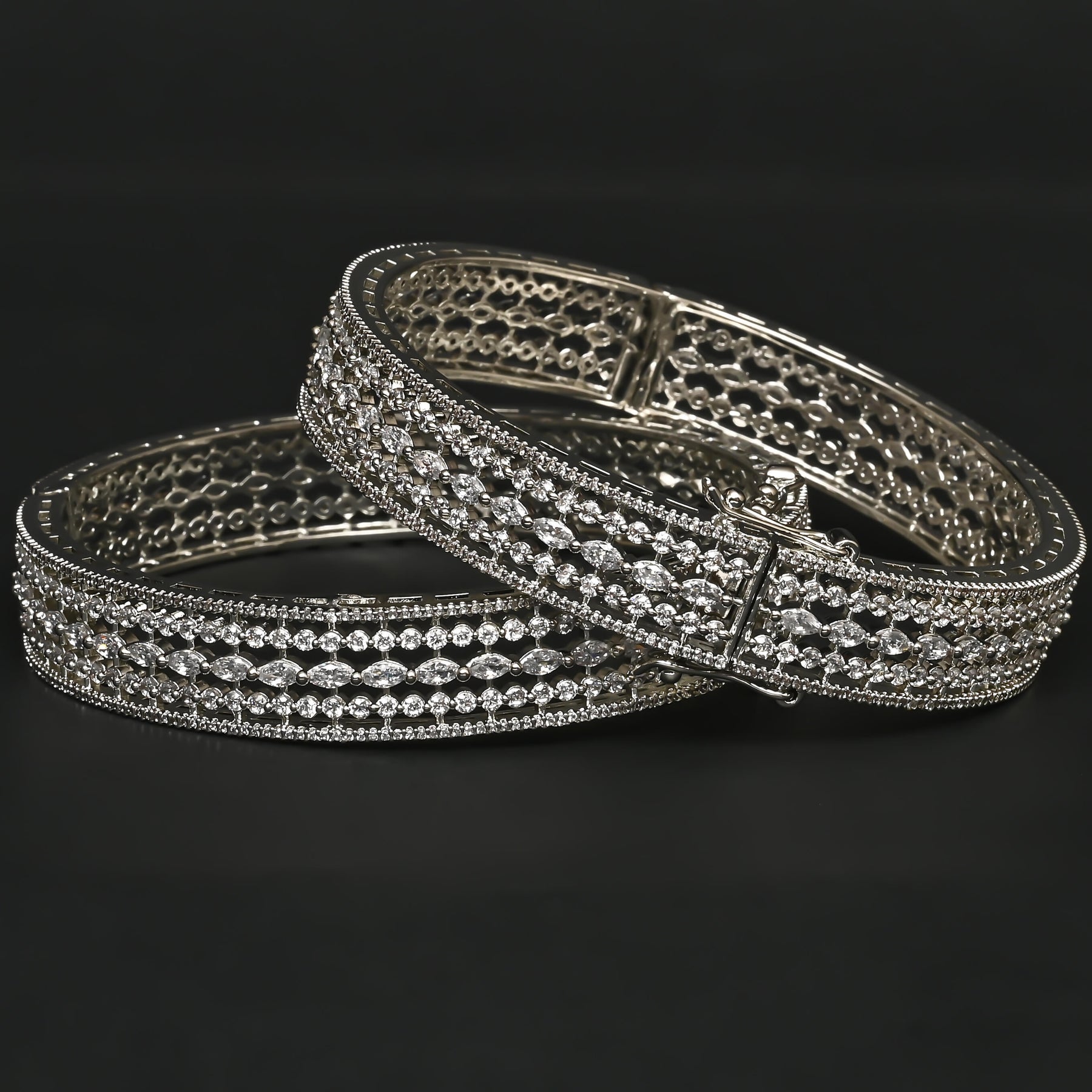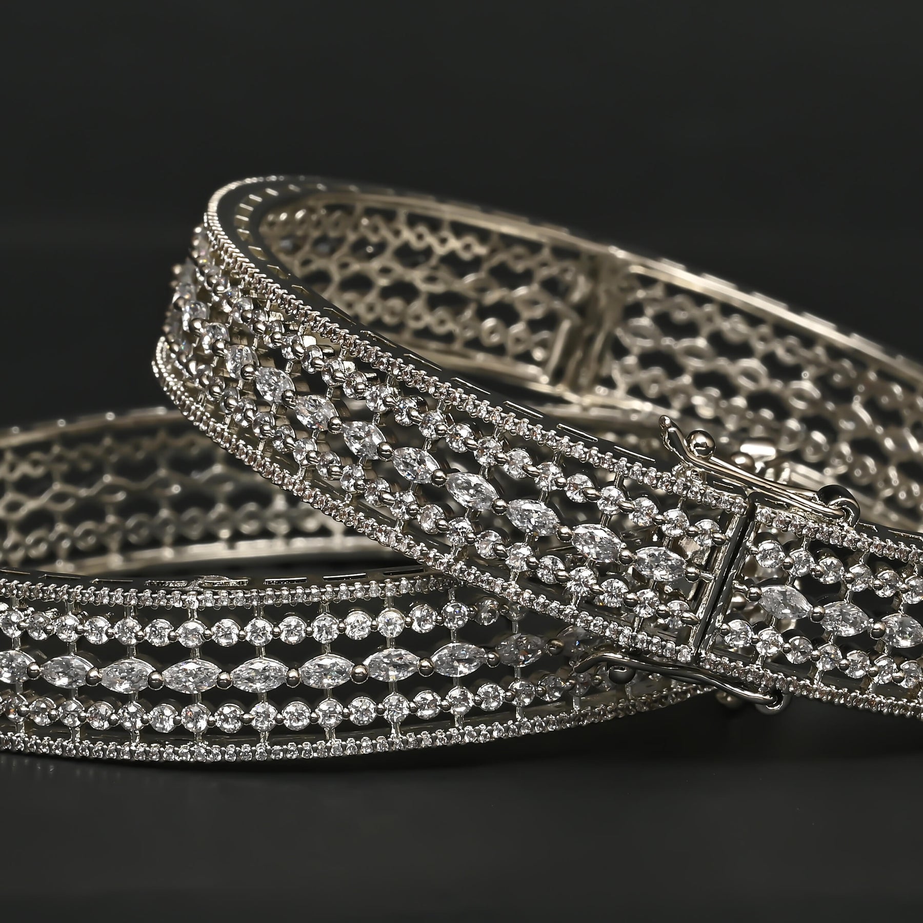 Discover the sophistication of CZ White Gold Bangles, crafted with genuine CZ stones that mimic the sparkle of diamonds. These handcrafted bangles feature a unique, one-of-a-kind design and a convenient side screw for easy wearing. Combining expert craftsmanship with elegant style, they are perfect for enhancing any collection with a refined, radiant touch.