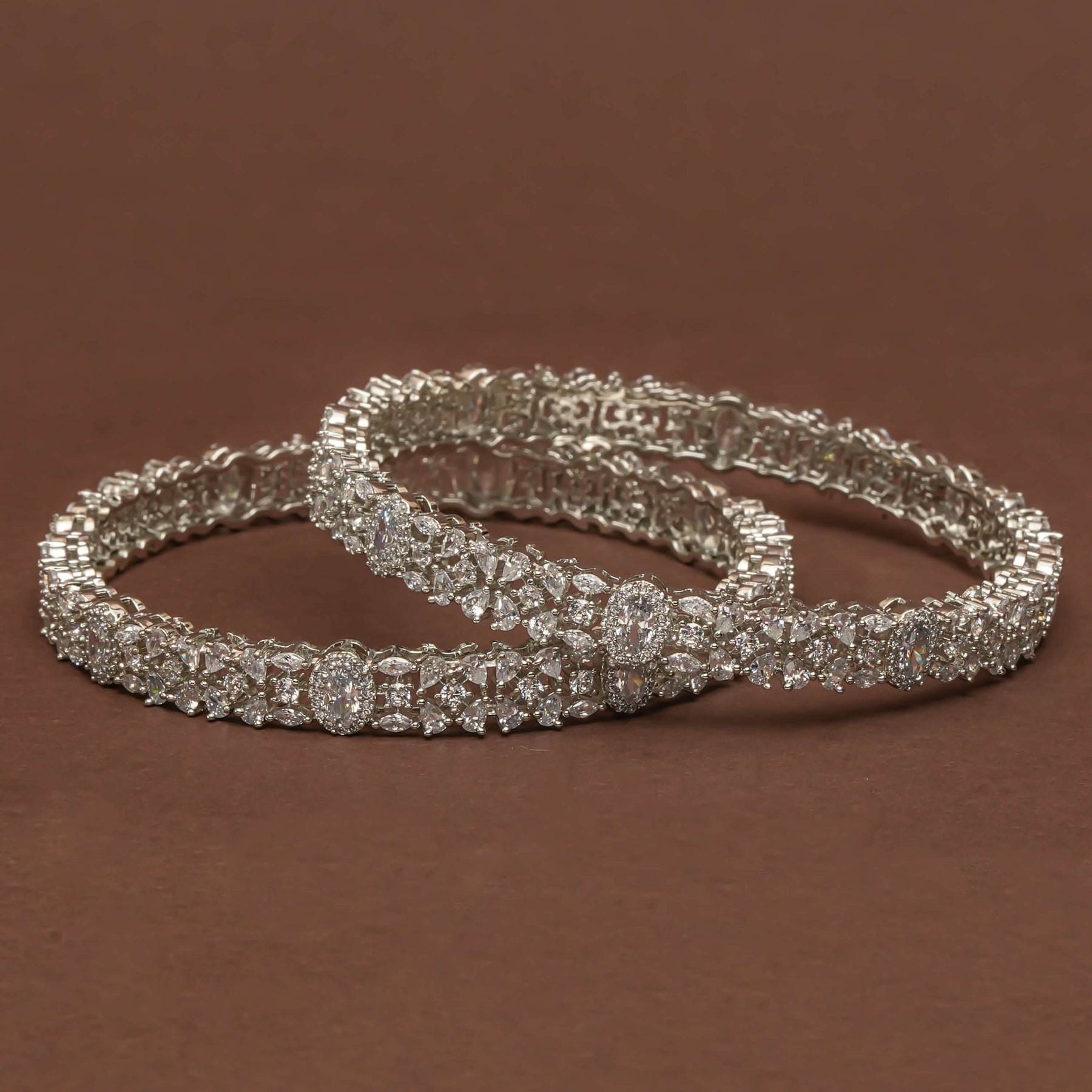 Crafted with precision, these CZ White Gold Bangles feature genuine cubic zirconia stones set in a white gold finish, offering brilliance akin to fine diamonds. Their unique, handcrafted design ensures exclusivity, while the innovative side screw mechanism provides effortless wear and secure fit. Perfect for adding refined elegance to any ensemble, these bangles combine craftsmanship and convenience seamlessly.
