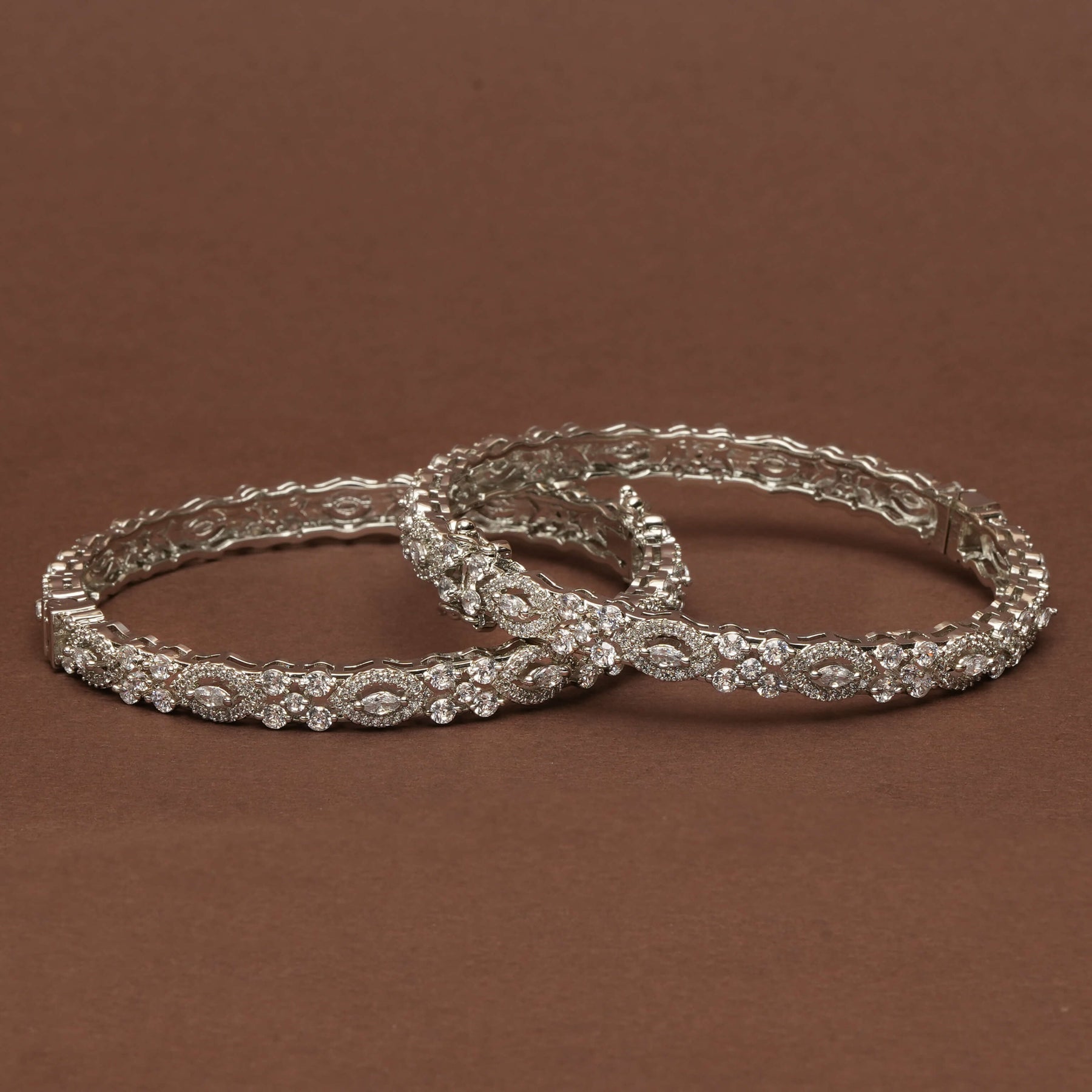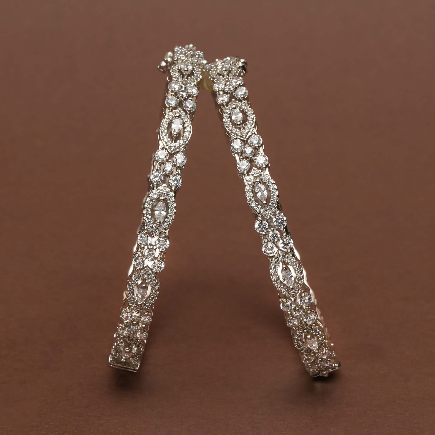Crafted with precision, these CZ White Gold Bangles feature genuine cubic zirconia stones set in a refined white gold finish. Each piece is handcrafted, highlighting a unique, one-of-a-kind design. Designed for convenience, the bangles include a side screw mechanism allowing easy wear and secure fit. This combination of elegant aesthetics and thoughtful engineering makes them an exceptional addition to any jewelry collection.