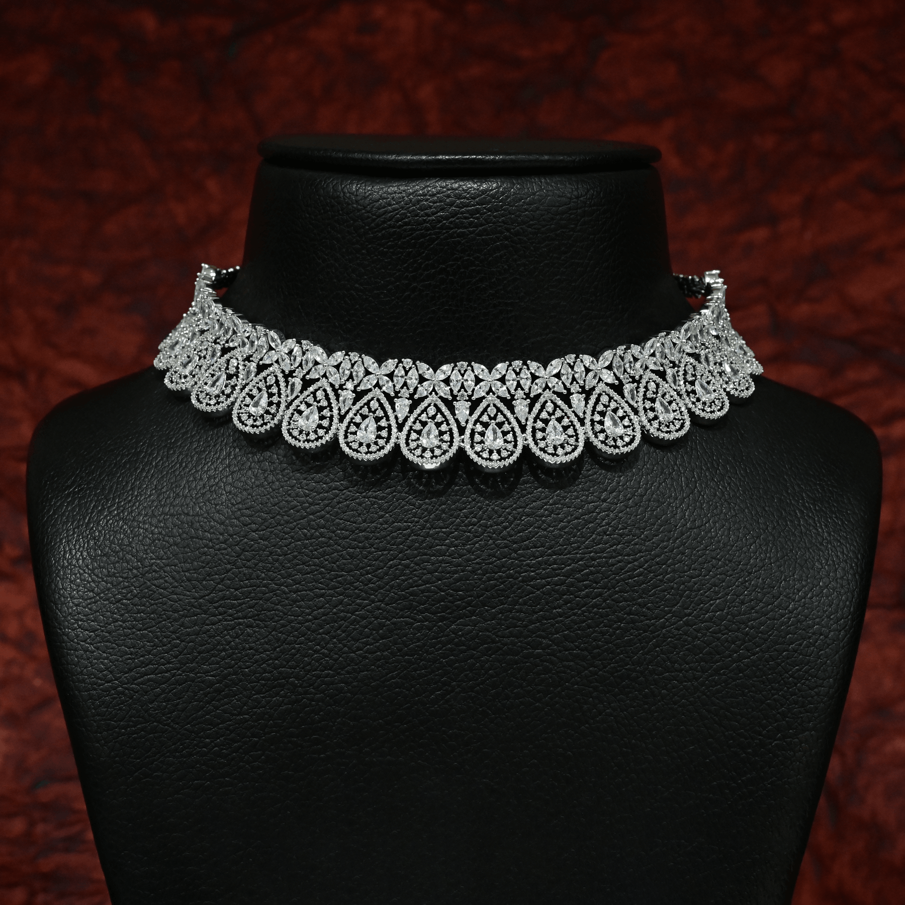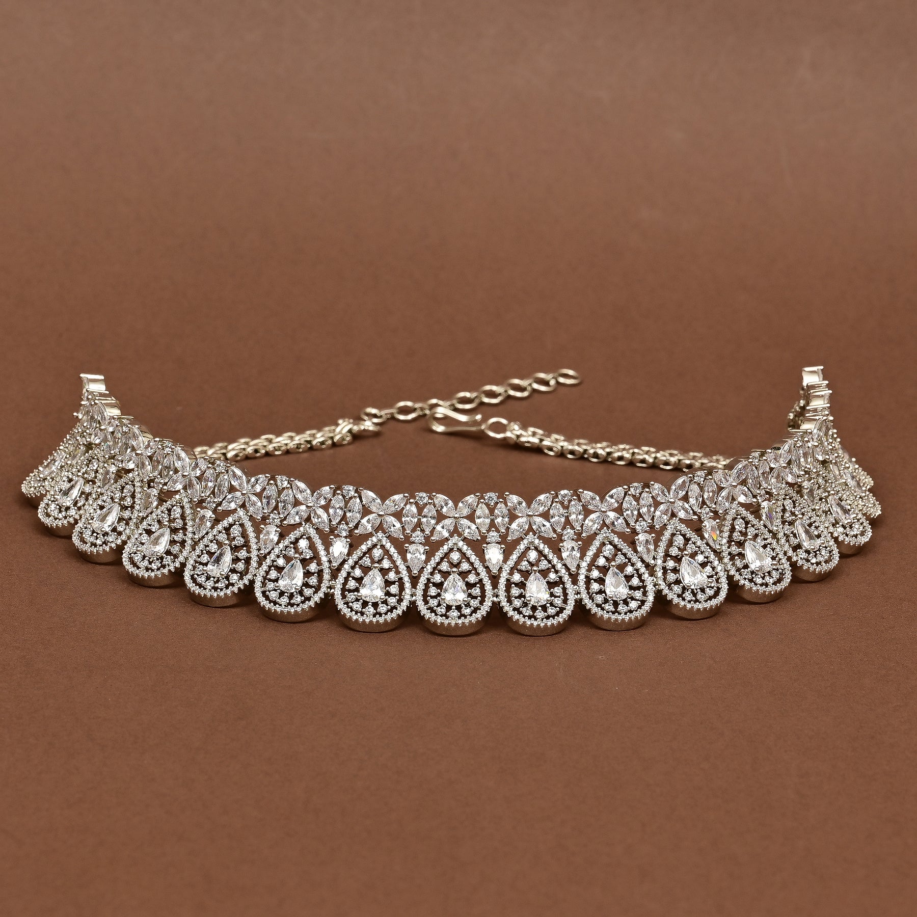 Elevate your style with our exquisite CZ Choker. Handcrafted with real CZ stones, this white gold choker boasts a one-of-a-kind exclusive design. Experience the brilliance and luxury of diamond-like sparkle without the heavy price tag. A must-have for any fashion-forward individual.