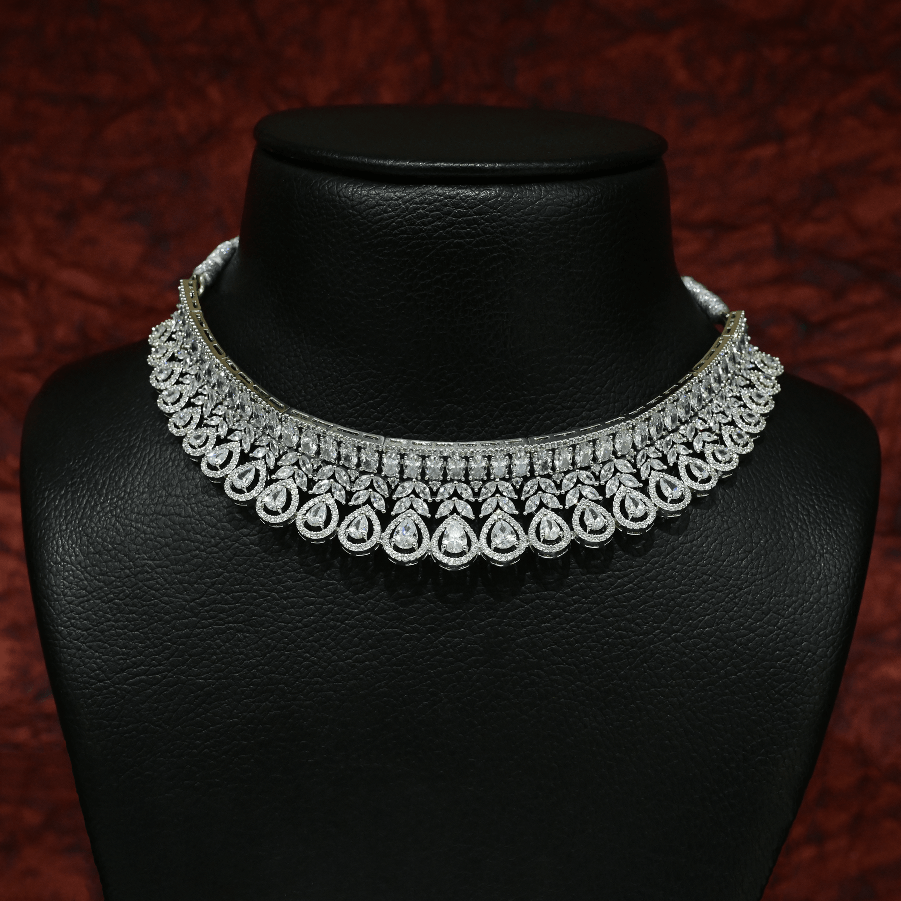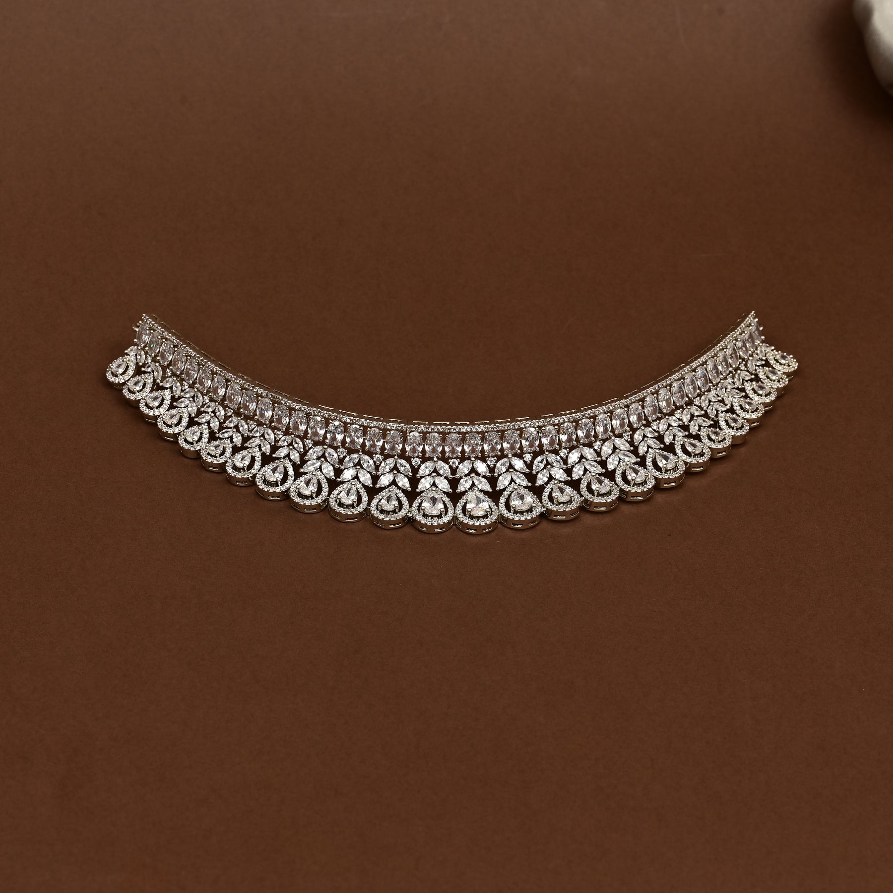Upgrade your jewelry collection with our CZ Choker. Made with real CZ stones, this white gold Choker boasts a hand crafted diamond-like design that is truly one of a kind. Elevate your style with this exclusive piece.