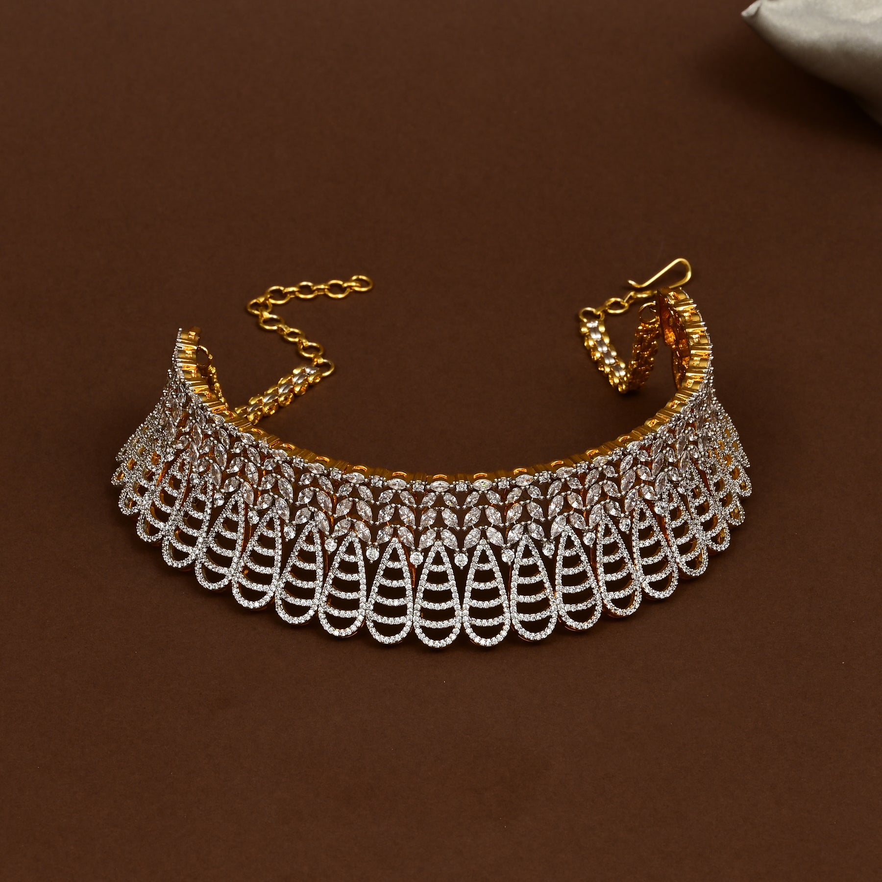 This CZ Choker is perfect for any party with its real CZ stones and hand-crafted design that gives it a diamond-like appearance. Elevate your look with this elegant and sophisticated piece, sure to make a statement.