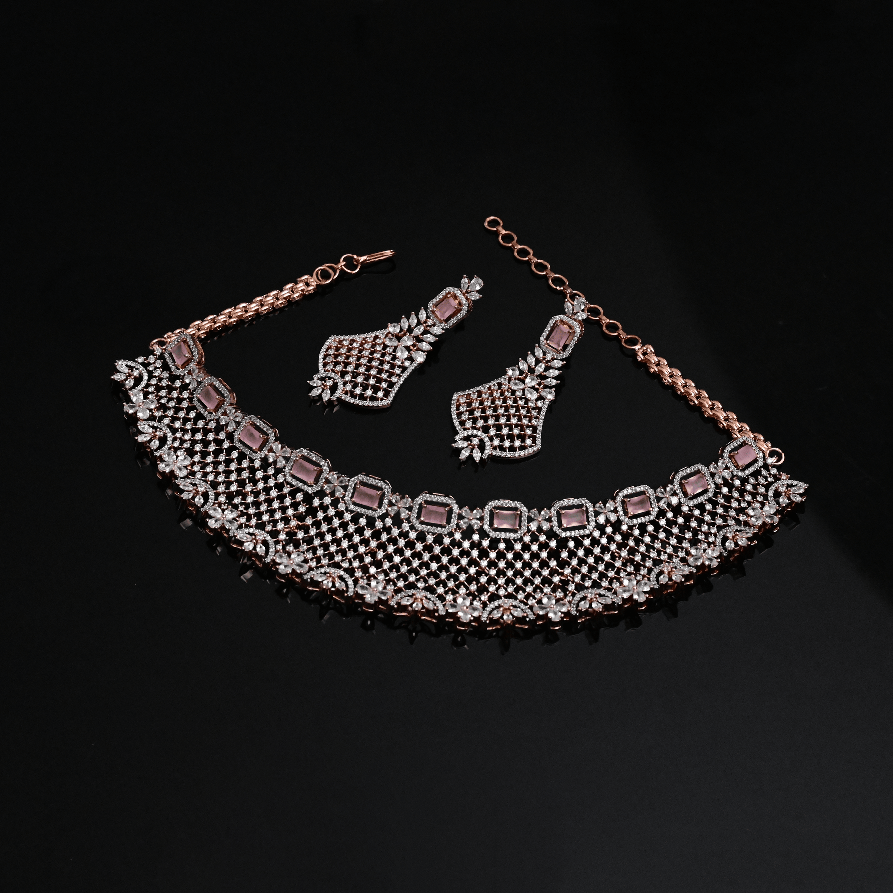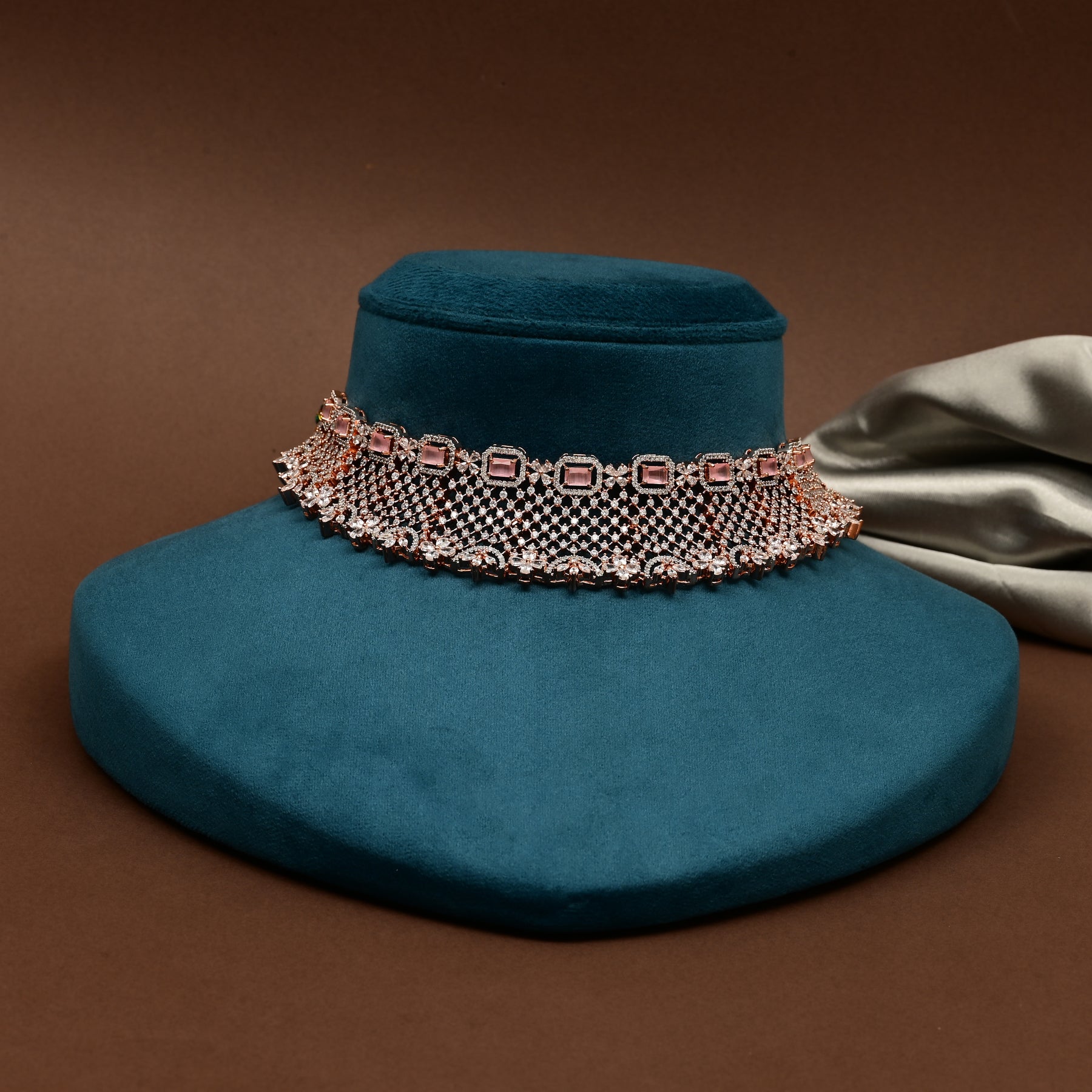 Enhance your style with our CZ Choker. Made with sparkling CZ rose gold and semi precious pastel pink stones, this hand crafted necklace will elevate any outfit. The real CZ stones give off a diamond-like shine, making this a one-of-a-kind exclusive design. Upgrade your jewelry collection with this unique and elegant choker.