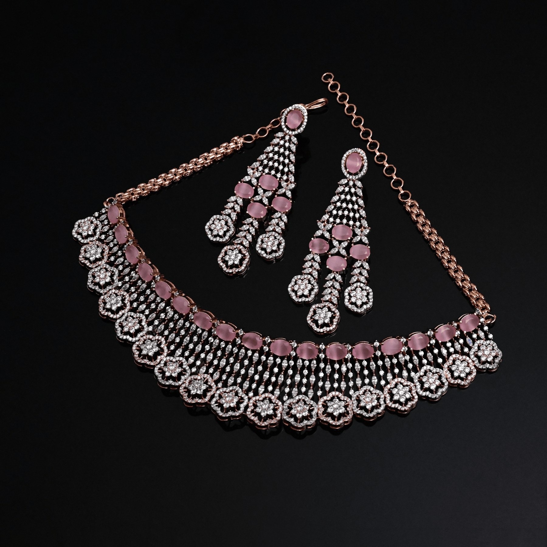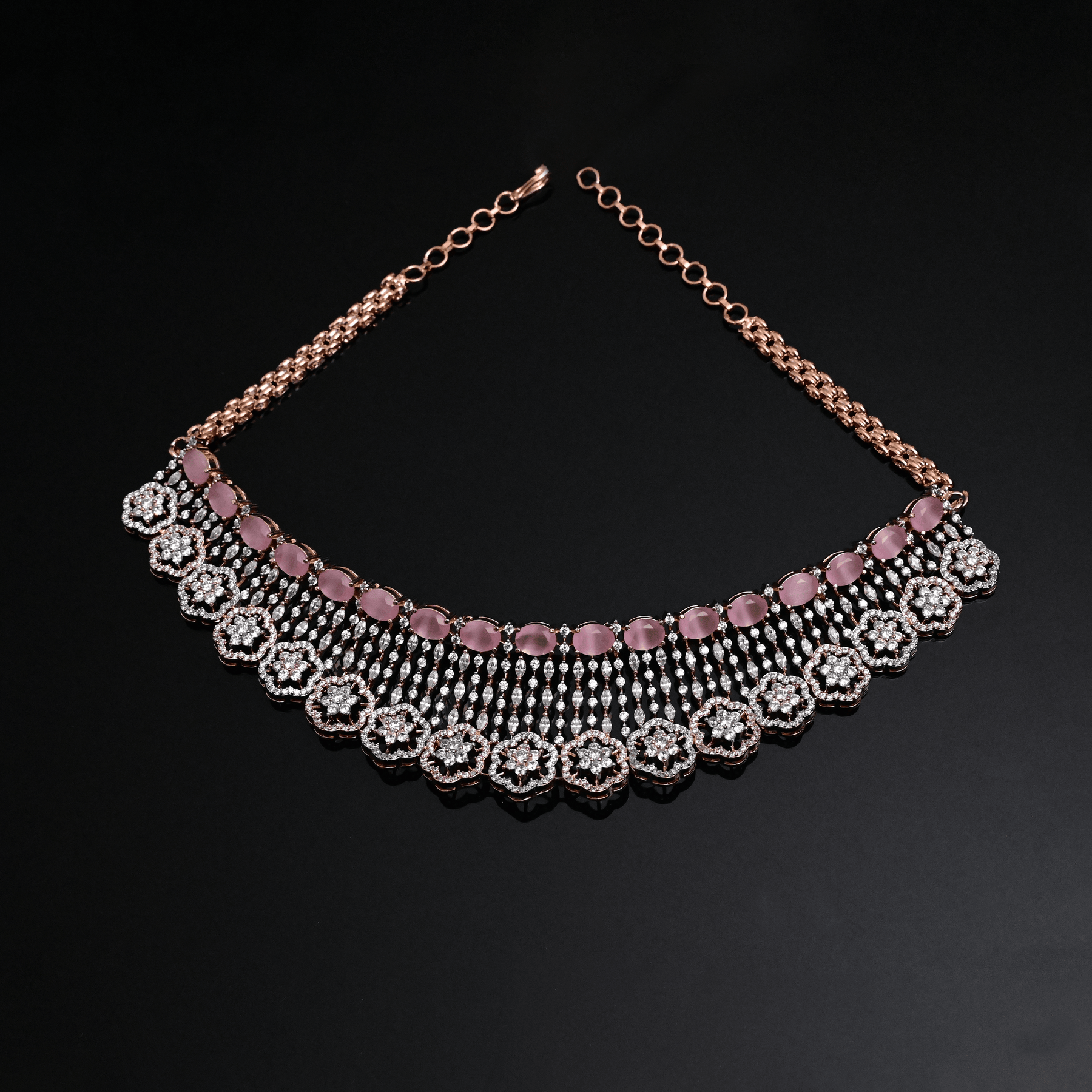 Upgrade your jewelry collection with our CZ Choker. Dazzle any outfit with the sparkling CZ and semi-precious pastel pink stones that are handcrafted to perfection. This one-of-a-kind exclusive design will elevate your style with its diamond-like shine. Add a touch of luxury to your look with this rose gold choker.