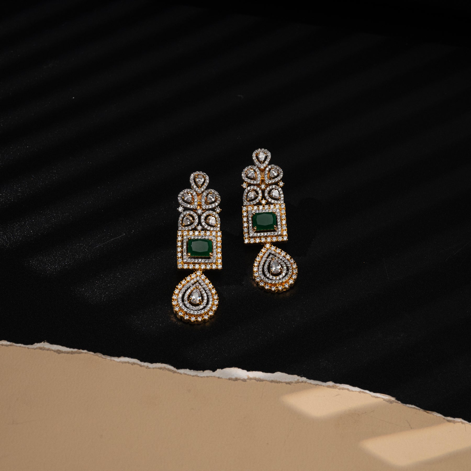 This unique CZ Emerald Choker features hand-crafted, diamond-like CZ stones and stunning semi-precious emerald stones. With its one-of-a-kind, exclusive design, this choker is sure to add a touch of sophistication and elegance to any outfit. Experience the beauty and brilliance of this choker for yourself.